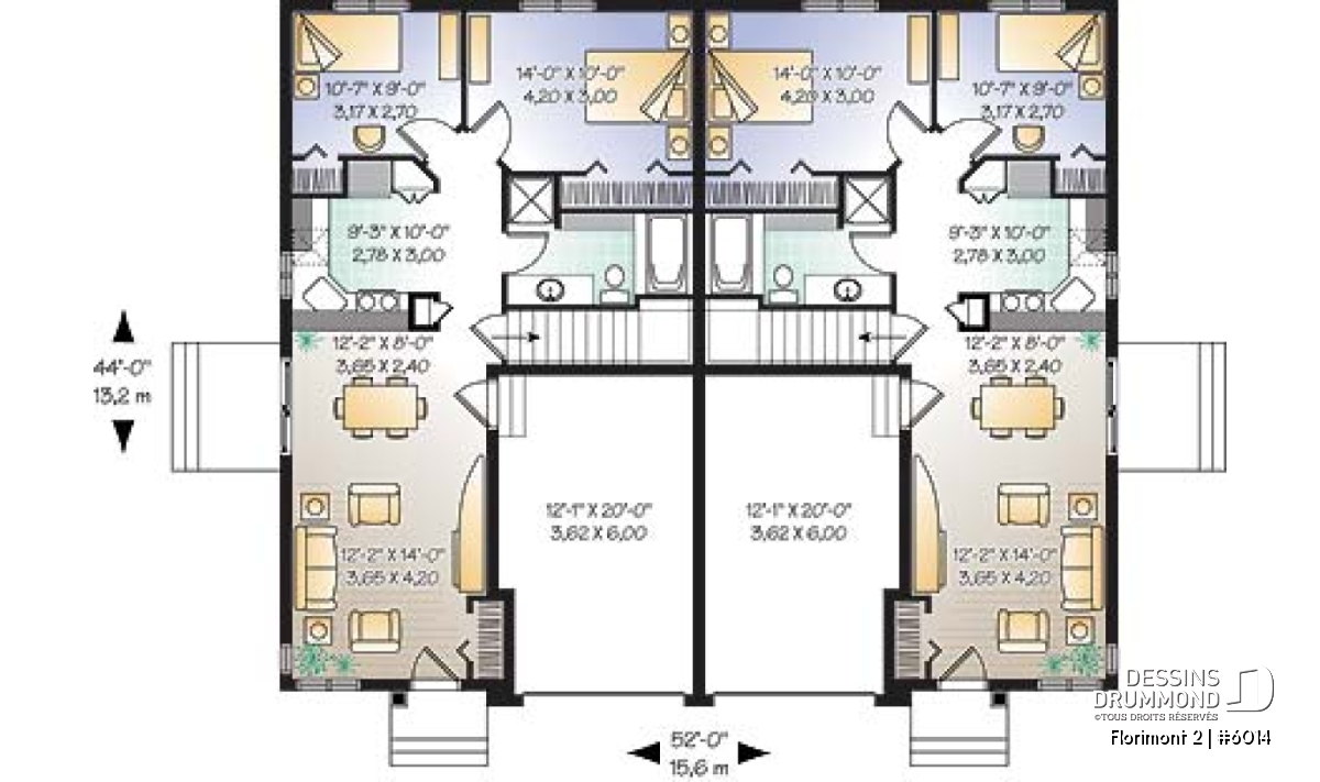 Plan de maison jumelé avec garage et 2 chambres