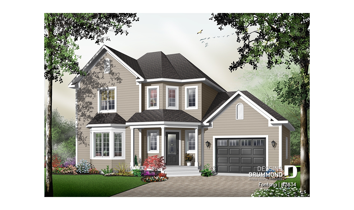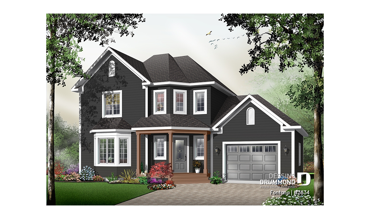 À l’étage, une chambre des maîtres confortable, de belles chambres secondaires et une salle de bain originale, car aménagée dans la partie en tourelle, procurent à ce modèle une bonne part d’items tant convoités par les futurs propriétaires ou ceux à la recherche d’une maison encore plus fonctionnelle.