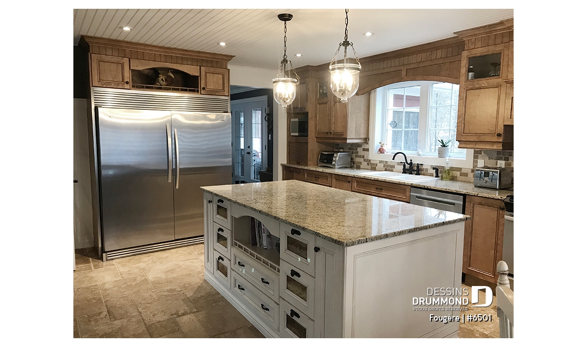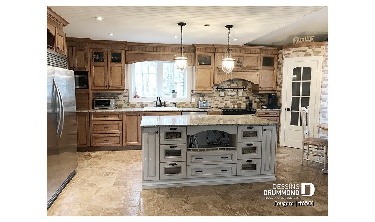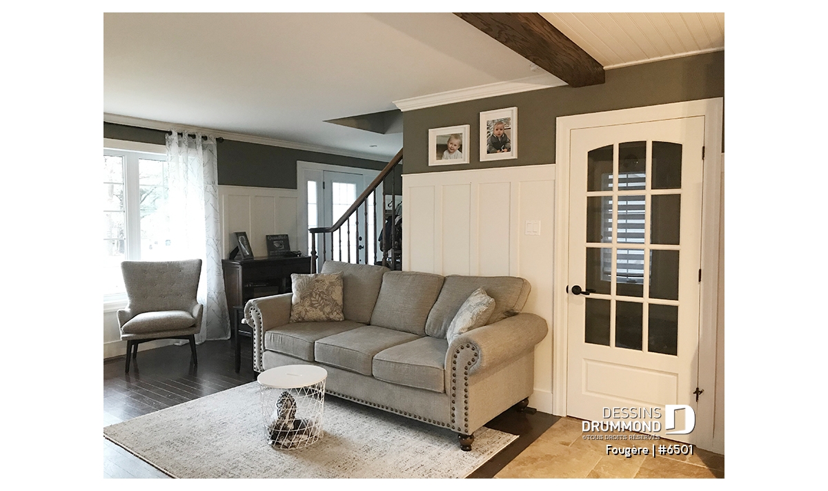 Rez-de-chaussée - Plan de maison champêtre, à étages, 3 chambres avec plafond cathédrale, jolie finition extérieure - Fougère