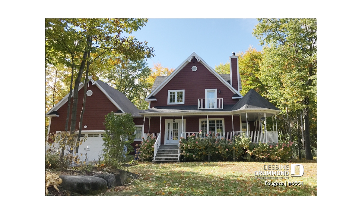 Vue avant - MODÈLE DE BASE - Plan de maison champêtre, à étages, 3 chambres avec plafond cathédrale, jolie finition extérieure - Fougère