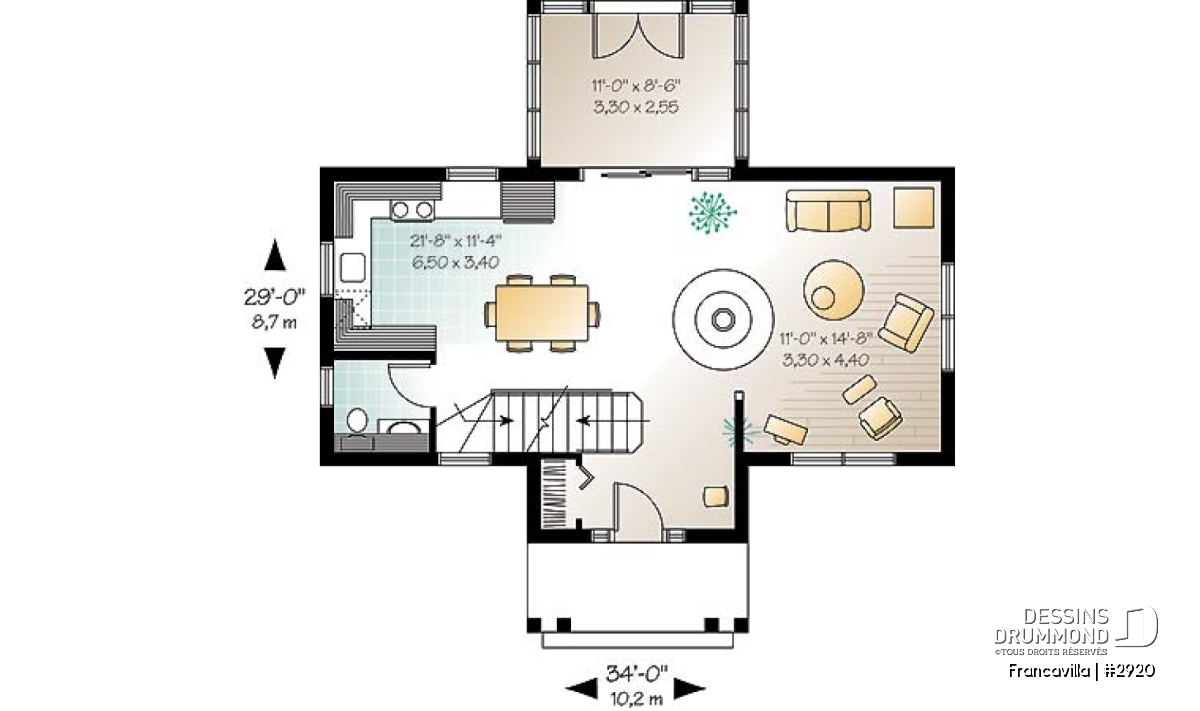 | Largeur | 34'0" | Profondeur | 29'0" |
