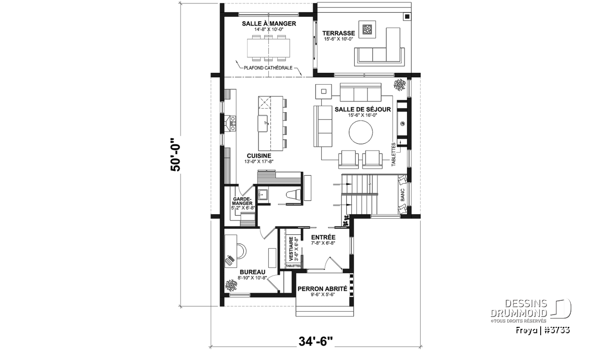 Plafond à 9' sur tout le rez-de-chaussée sauf à la salle à manger où il est cathédrale.