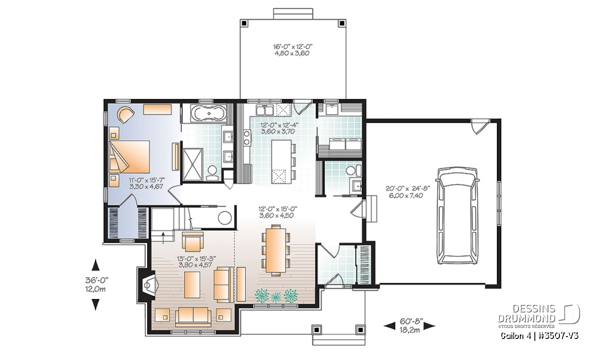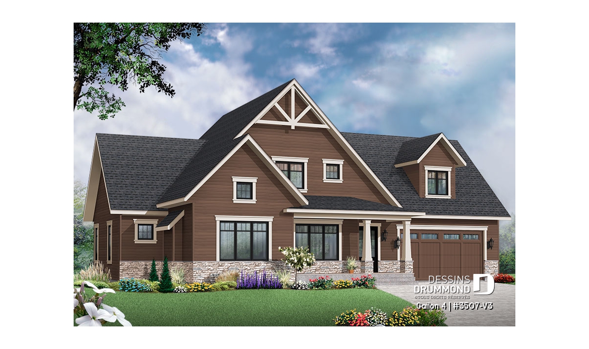 Conçu à partir du très populaire plan champêtre 3507, ce modèle version se veut d’un caractère tout à fait unique avec son garage double et son extérieur véritablement chaleureux.