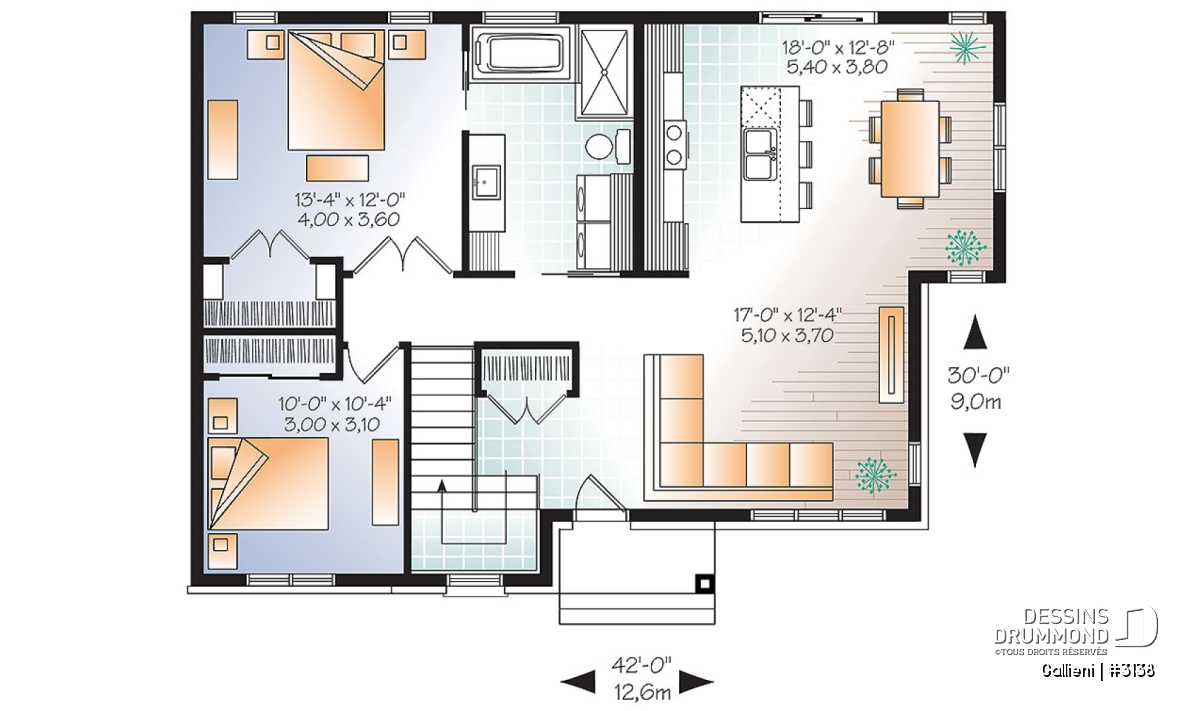 | Largeur | 42'0" | Profondeur | 30'0" |