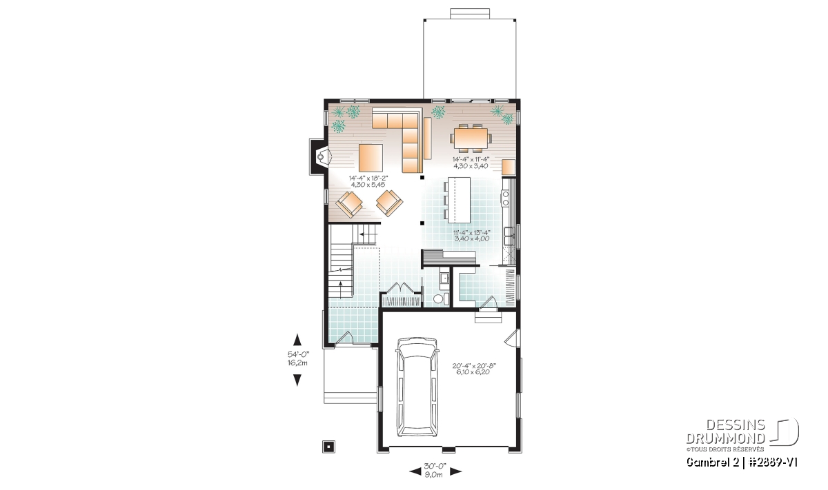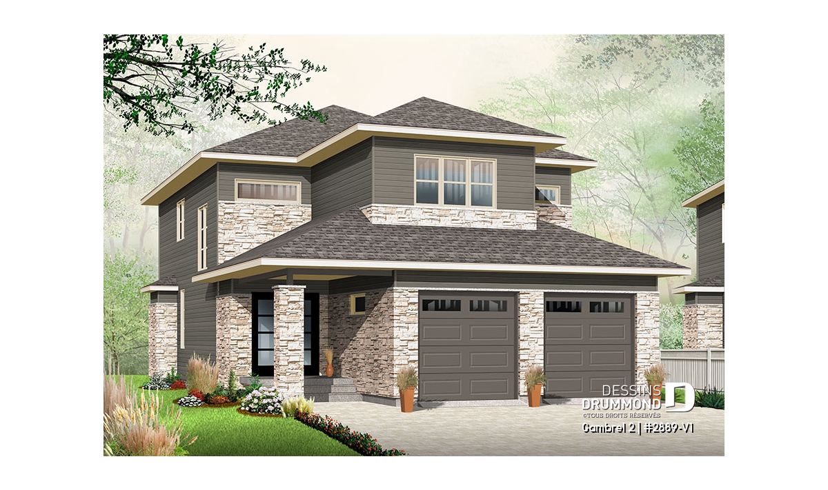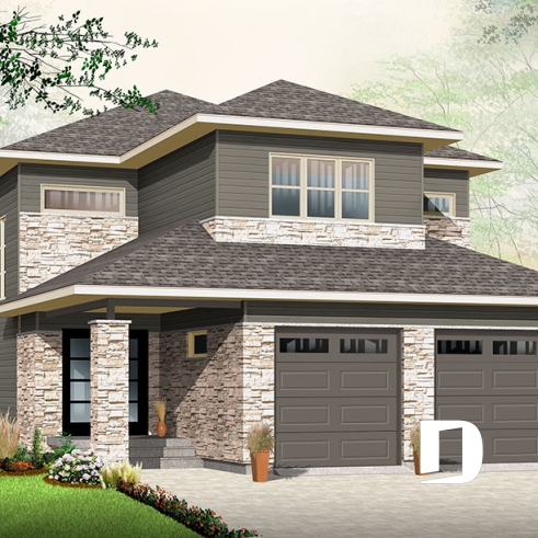 Vous êtes à la recherche d’une maison contemporaine à étage offrant un garage double et la possibilité d’être construite sur un terrain véritablement étroit ? Eh bien, jetez un œil sur ce plan 2889-V1 dont les 30 pieds de largeur et l’aménagement intérieur en font un véritable modèle de prédilection.
