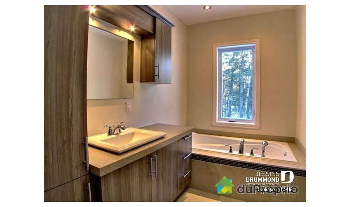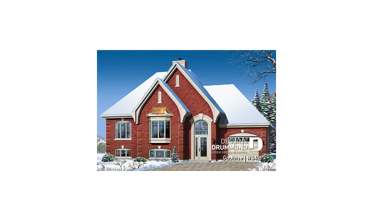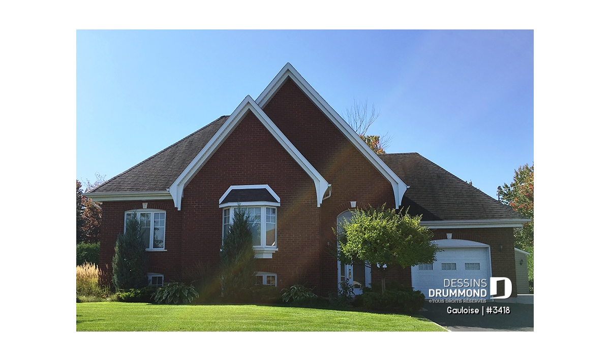 Dotée de volumes bien balancés, d’une fenestration plutôt remarquable et de briques en façade principale, cette maison ne laisse absolument pas indifférent. Ces deux volumes centraux, à pignons accentués, lui confèrent une réelle élégance tout en permettant un rapprochement du style manoir, encore passablement en demande.