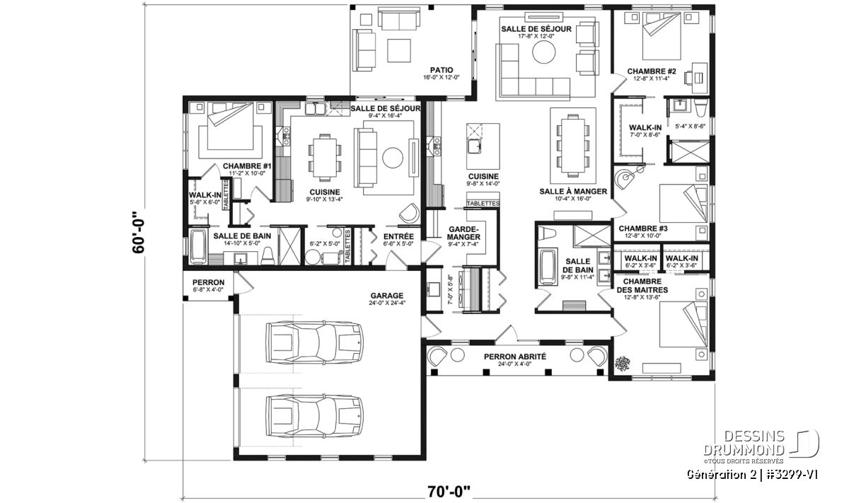 Accès au garage par le côté, Garde-manger, Salle de bain communicante, Walk-in double ch. maîtres, Bain et douche séparés, Bain et douche séparés, Aire ouverte, Aire ouverte, Terrasse abritée, Terrasse abritée, Lavabo double, Ilôt, Salle de lavage au rez-de-chaussée, Salle de lavage au rez-de-chaussée, Tablettes, Walk-in ch. maîtres, Garage spacieux