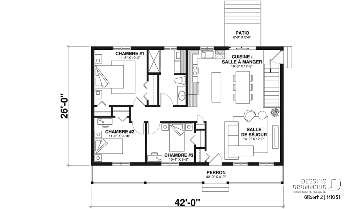 | Largeur | 42'0" | Profondeur | 26'0" |