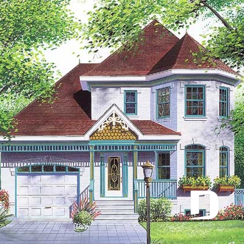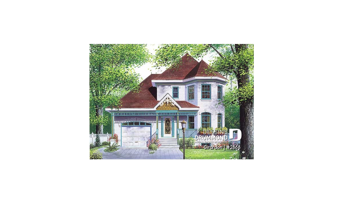 Vue avant - MODÈLE DE BASE - Maison d'inspiration victorienne, bon rangement à la cuisine, 3 grandes chambres, plafond à 9', garage - Girardon