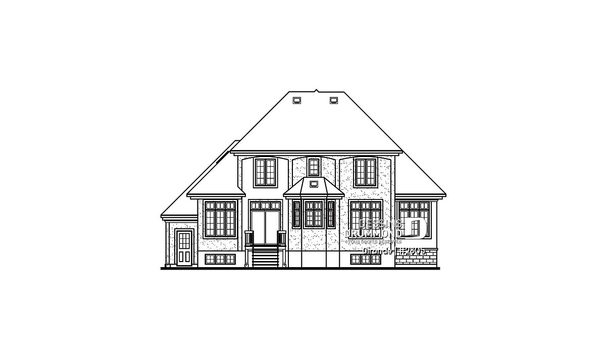Vue avant - MODÈLE DE BASE - Plan de maison classique, 3+ chambres, plafond 9' au rdc, balcon à la suite des maîtres, garage - Gironde