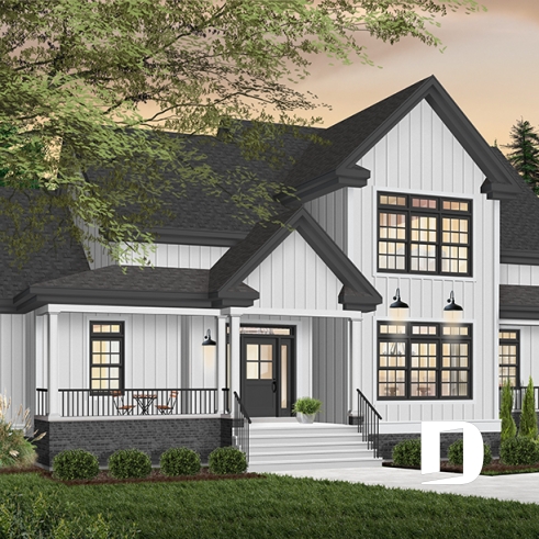 Galerie abritée à l'avant, plafond cathédrale dans la salle familiale, plafond à 9' au rez-de-chaussée, verrière, fenestration abondante et spéciale.