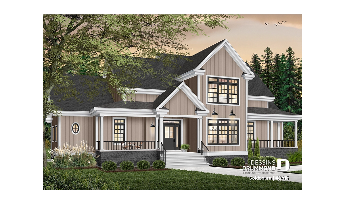 Aménagé dans une pensée tout à fait américaine, ce cottage inspire le calme et la stabilité. D’ailleurs, des galeries fort logeables habillent l’avant comme l’arrière alors qu’un garage double, des plus confortables, est accessible sur le côté et pour plus de discrétion.