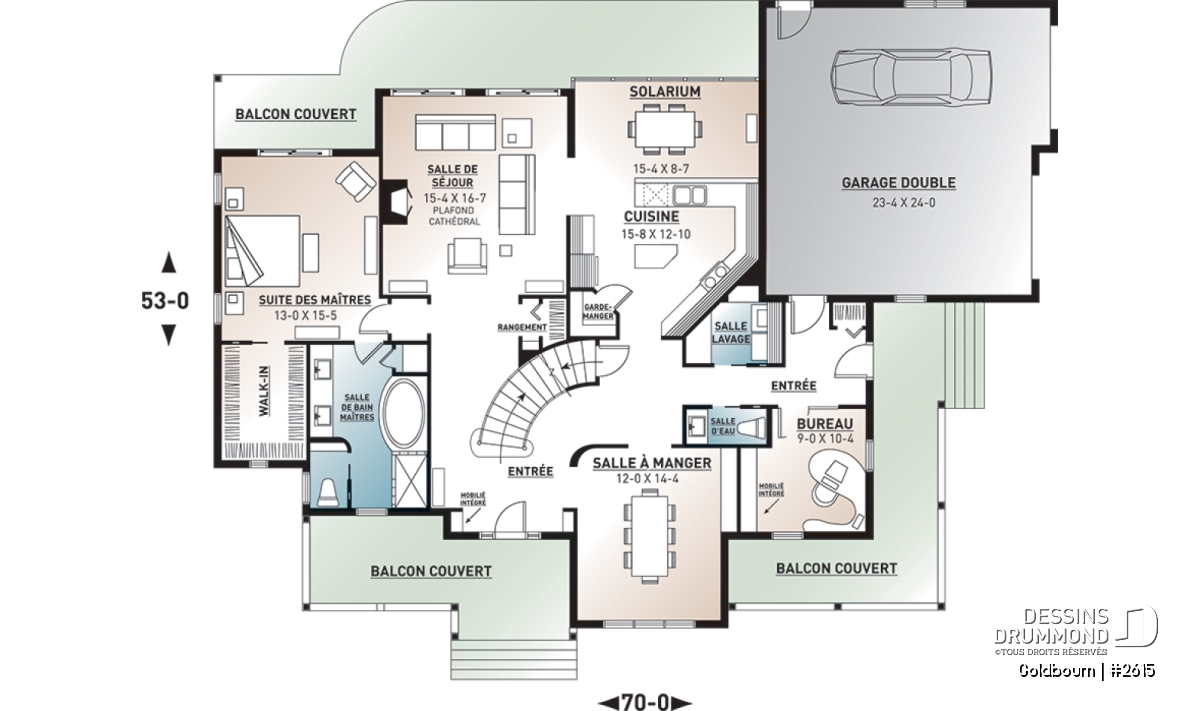 Foyer, Plafond cathédrale, Garage latéral, Salle de lavage au rez-de-chaussée, Vue paronamique, Garde-manger, Plafond à plus de 8', Ilôt, Suite d'invités, Terrasse abritée, Bureau / Salle étude, Solarium, Dinette / Coin déjeuner, Suite des maîtres au rdc, Walk-in ch. maîtres, Galerie 2-3 côtés, Mezzanine, Bain et douche séparés, Lavabo double, Bar à café