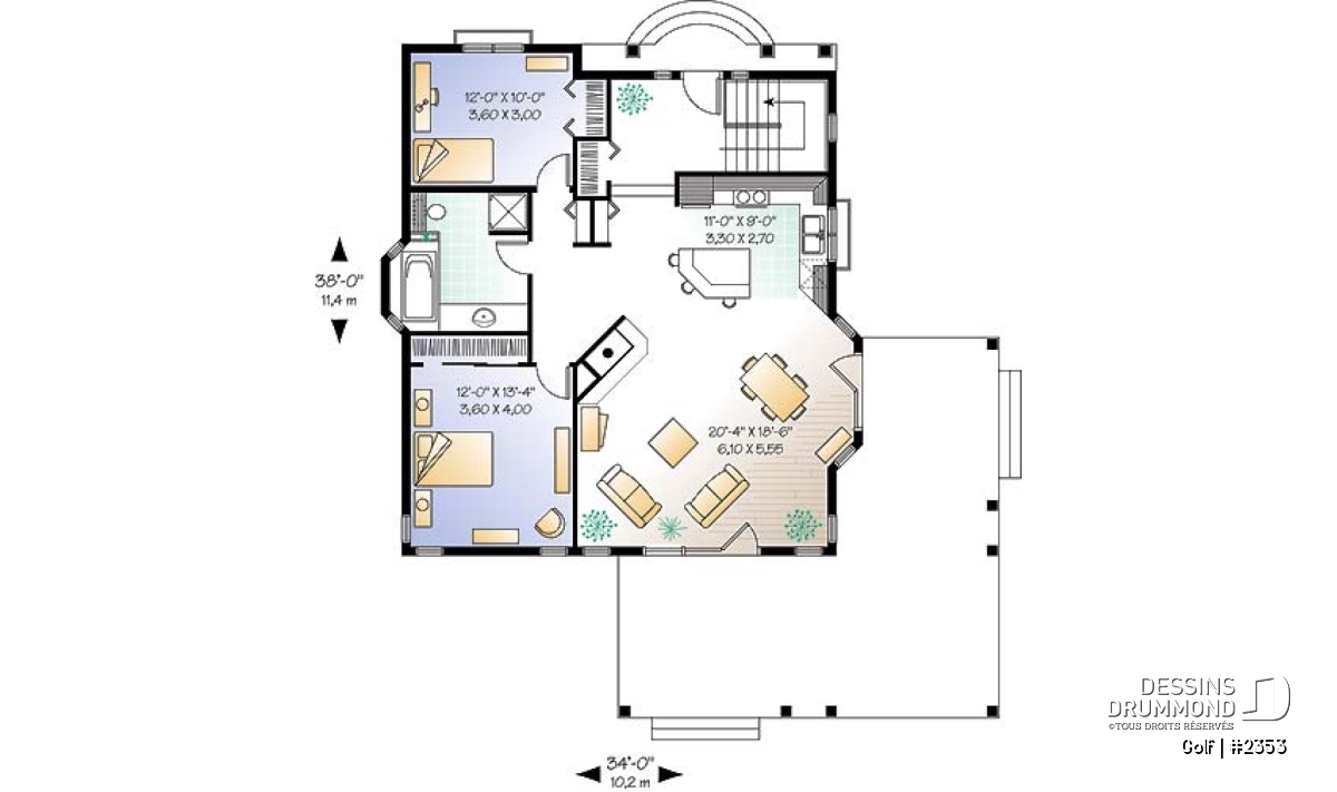 | Largeur | 34'0" | Profondeur | 38'0" |