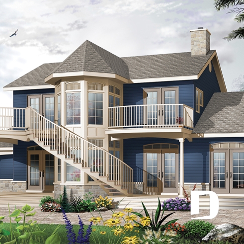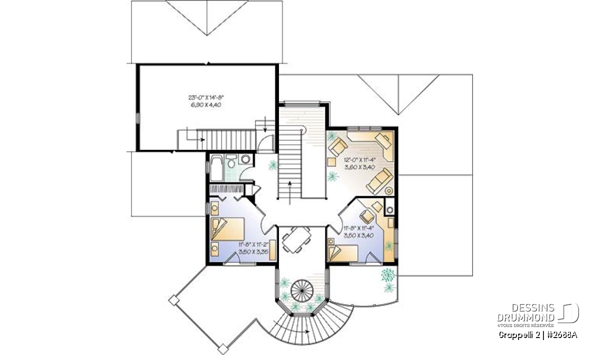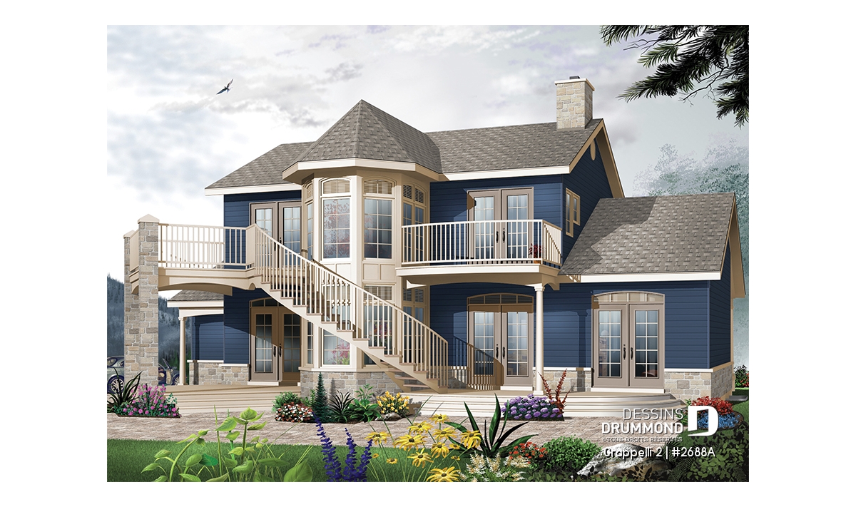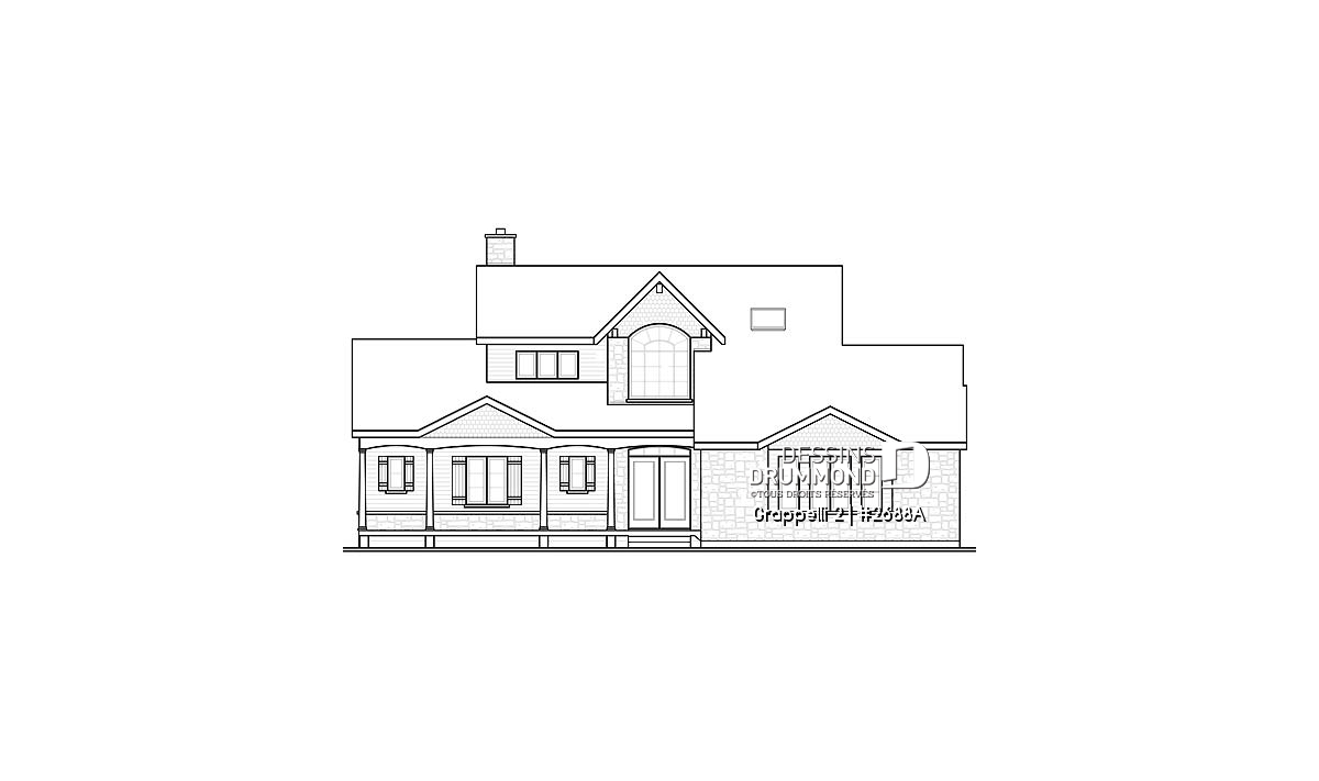 S’il est un plan qui a plu à nos voisins américains dès son arrivée sur le marché, c’est bien ce modèle 2688A pour lequel le concepteur a fait des pieds et des mains afin de rencontrer les requêtes émises par les dirigeants d’un concours américain. Ce concours visait à satisfaire les besoins de nombreux « boomers » en réalisant un plan de maison de format plus abordable et à l’intérieur de 2000 pi2 habitables excluant garage, espace boni et sous-sol. Une demande très très fréquente en ce moment aux États-Unis voire même de plus en plus au Canada.