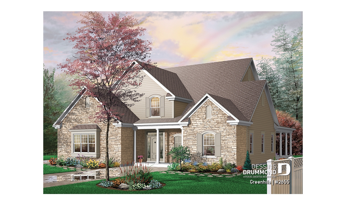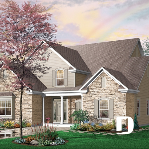 Plafond à 9pi au rez-de-chaussée et cathédrale sur près de deux étages à la salle familiale, garage triple avec descente au sous-sol, 4 chambres en tout, secteur activité bien orienté sur l'arrière et galerie en "L" reliant la salle à manger à la chambre des maîtres.