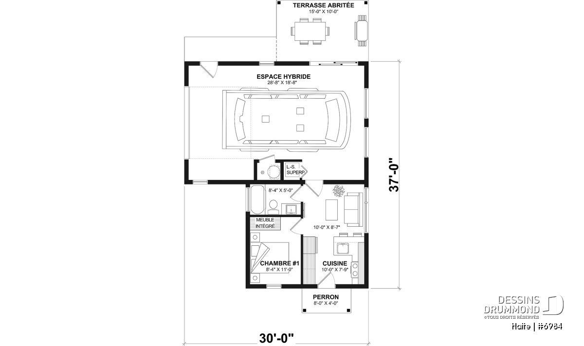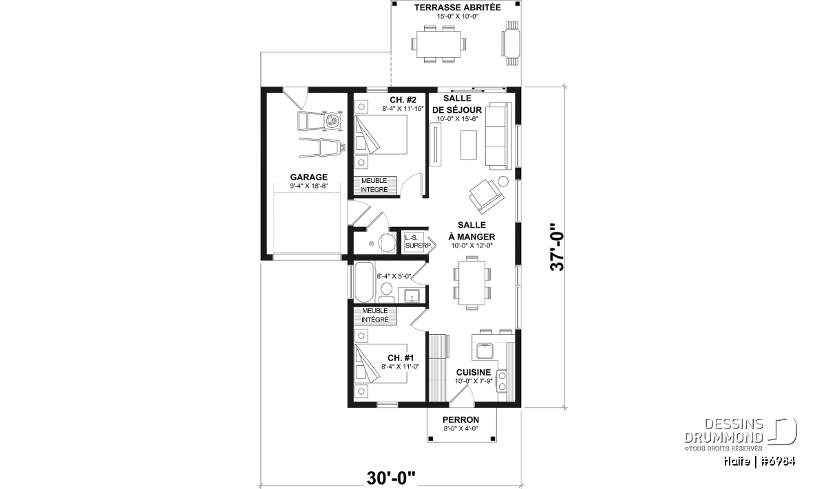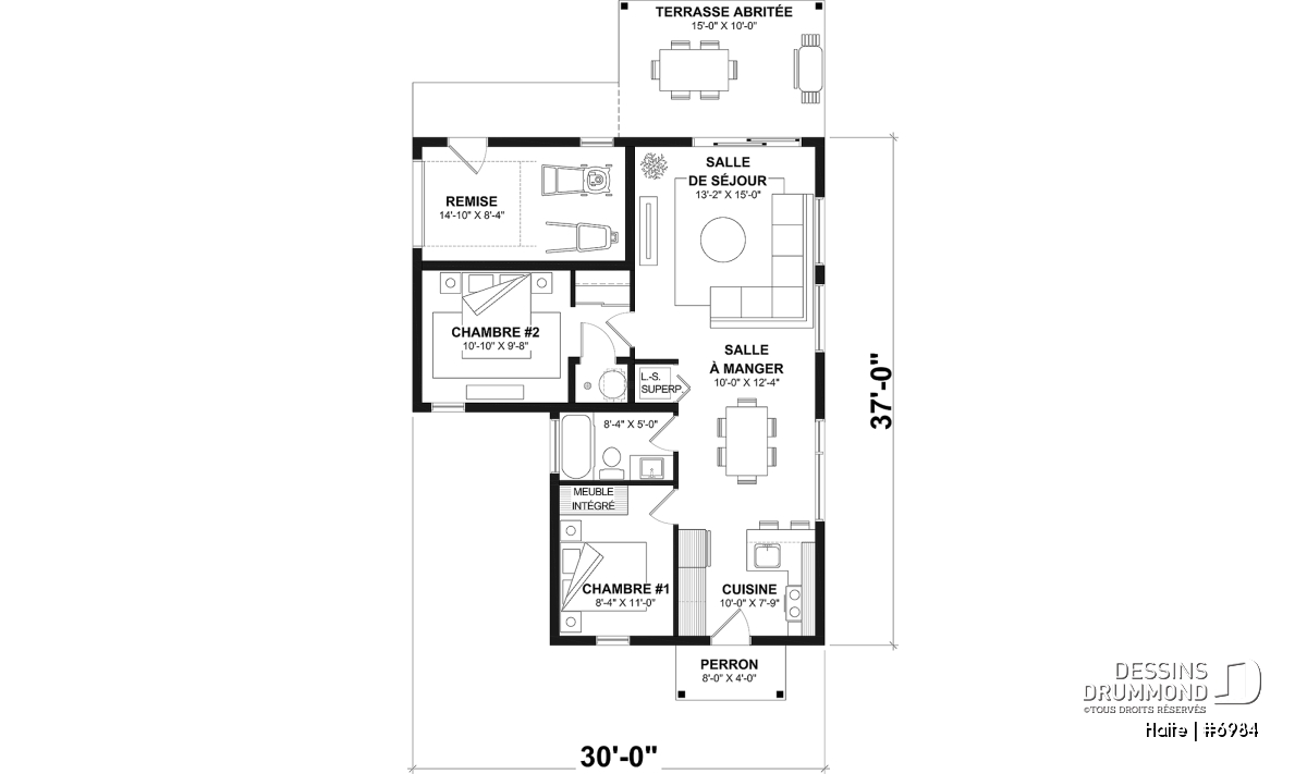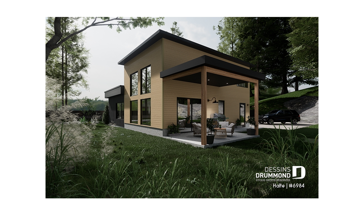 **L'estimation du coût de construction est pour le plancher de base uniquement. Pour ce plan #6984, elle inclut le balcon arrière couvert.