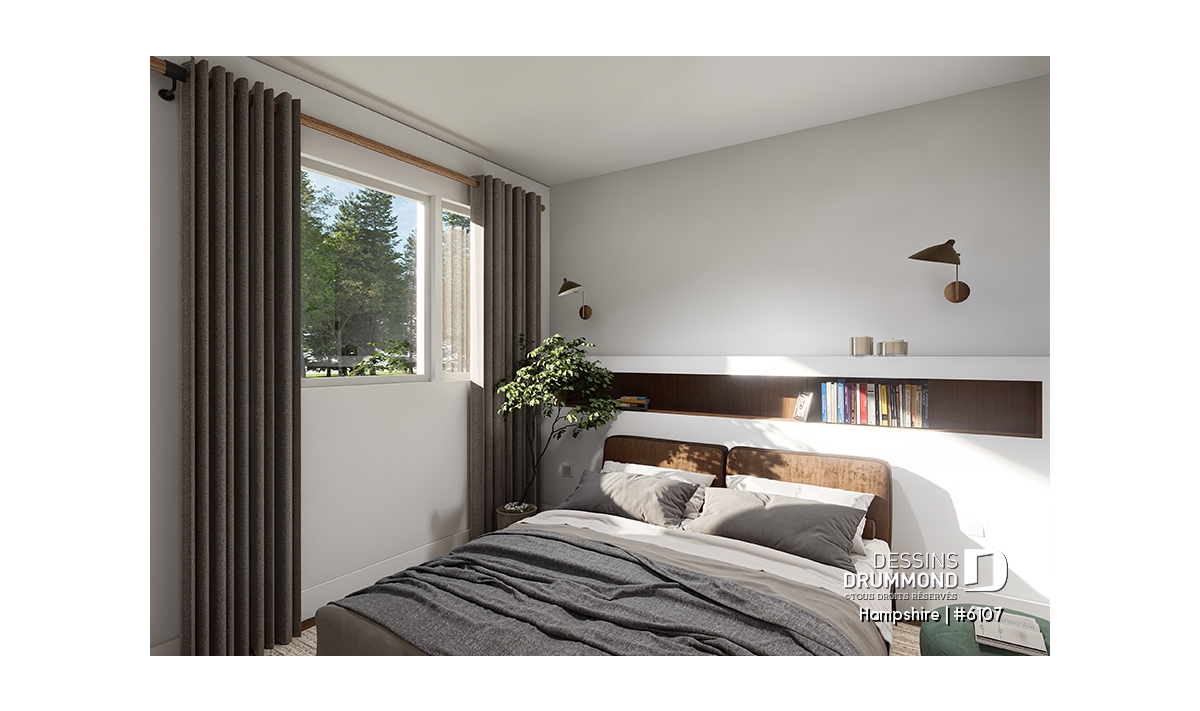 Plafond à 9' aux secteurs chambres et salle de bain, et plafond en pente à l'arrière de la maison.