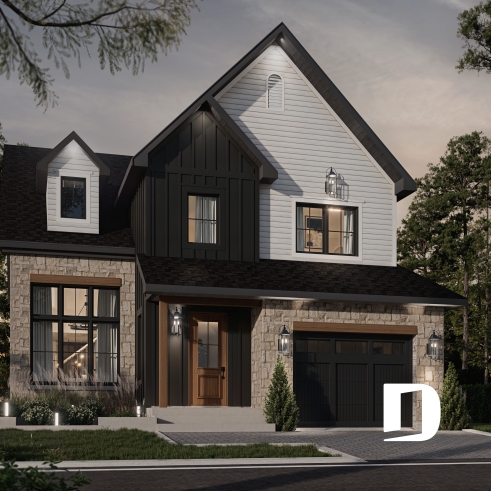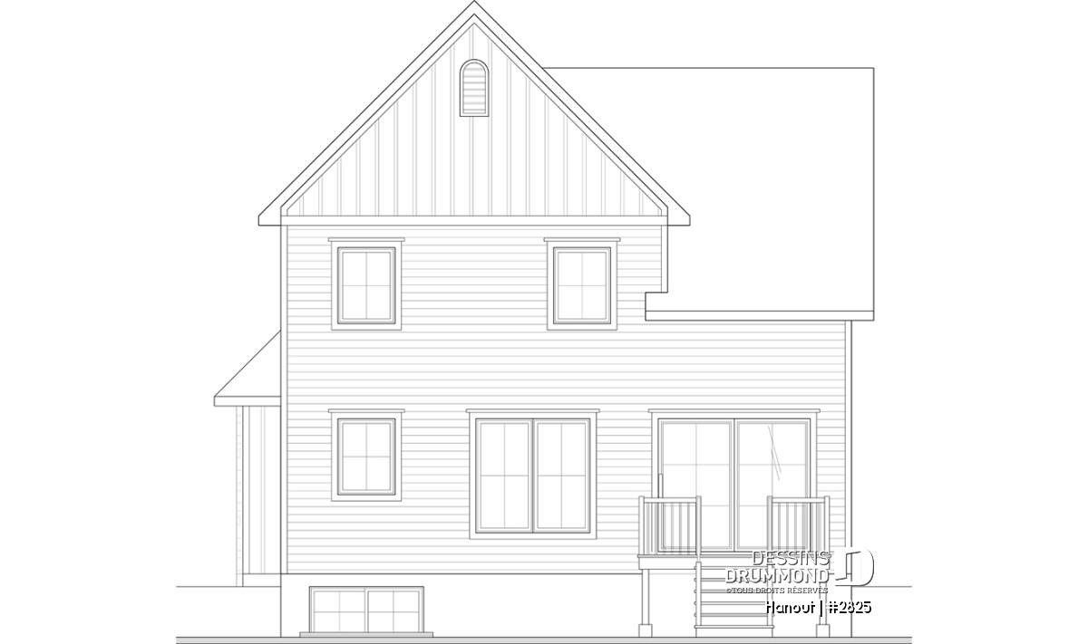 Vue avant - MODÈLE DE BASE - Maison avec mezzanine, 3 chambres, buanderie au r-d-c, bien fenêtrée - Hanout