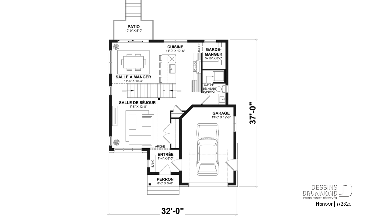 Largeur 32'0" Profondeur 37'0"