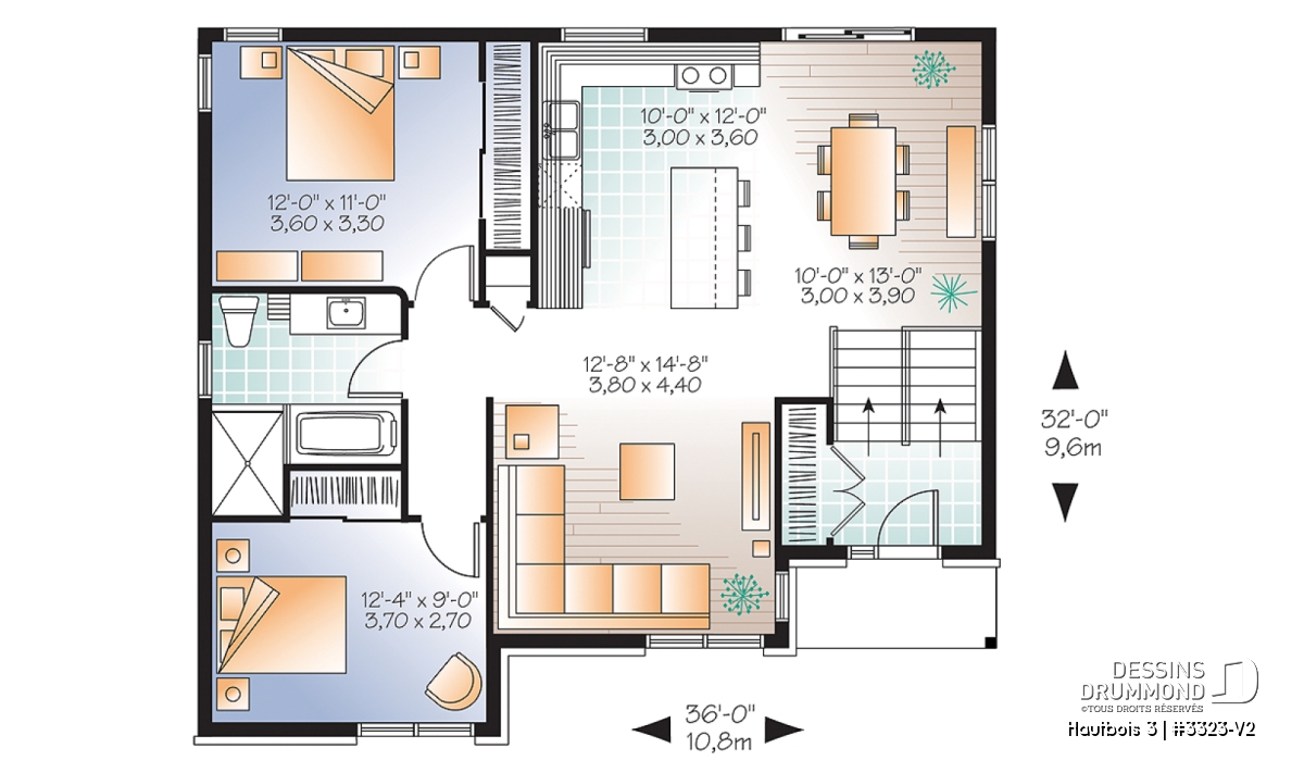 | Largeur | 36'0" | Profondeur | 32'4" |