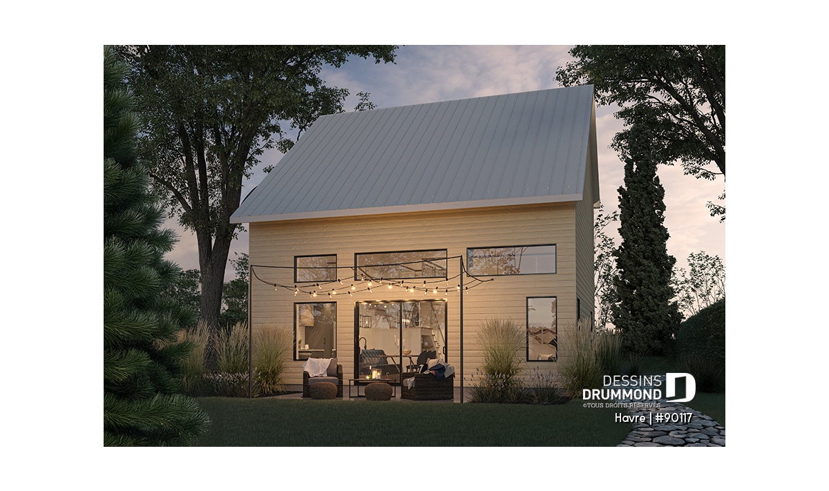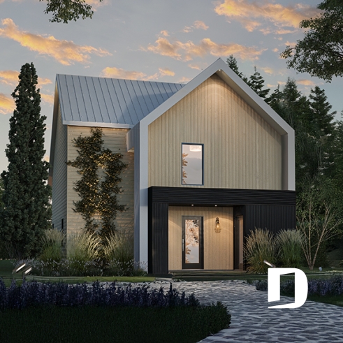 Plan de maison minimaliste et **éco-responsable, de style petit chalet Scandinave.