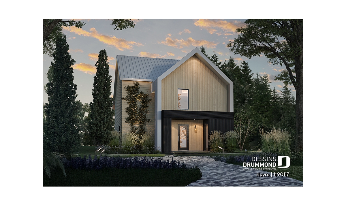 Simplicité: Une maison aux volumes modestes assurant une construction simplifiée, tout en favorisant la maximisation des espaces intérieurs, afin de réduire le nombre de pied carrés et le coût de construction.