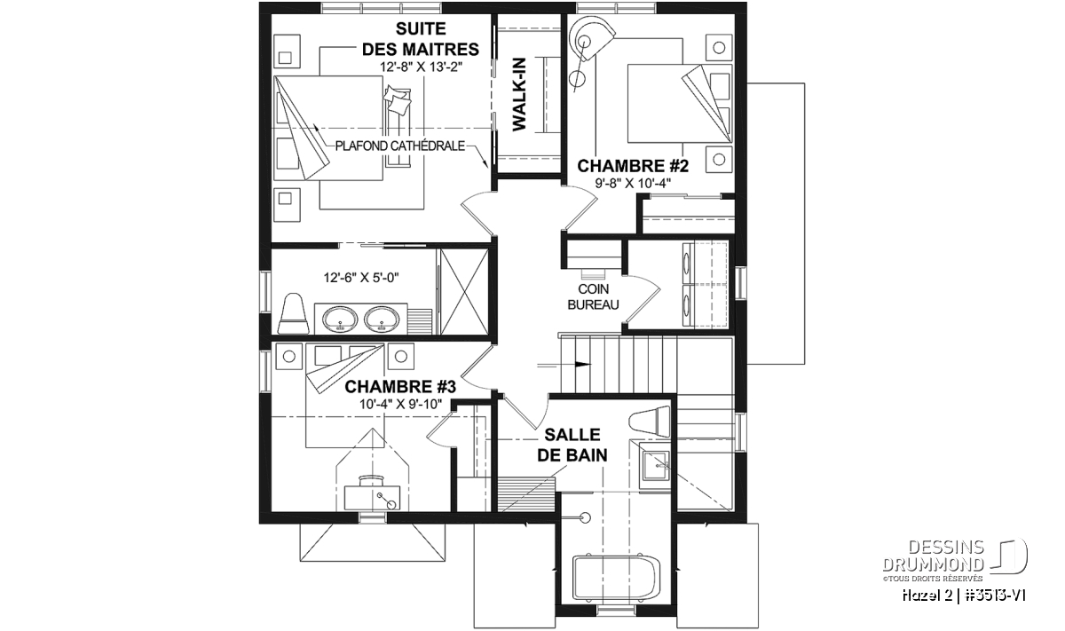 Deux chambres additionnelles et une grande salle de bain complètent l’étage.