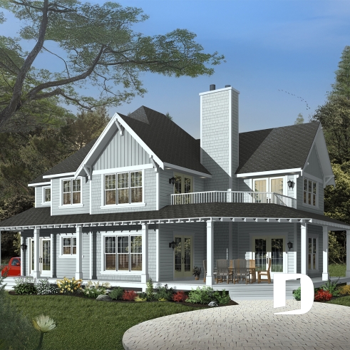 Plan de maison à étage style champêtre de 3 chambres avec superbe chambre des parents