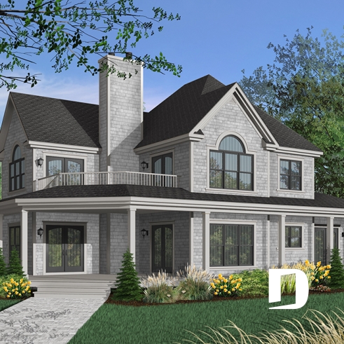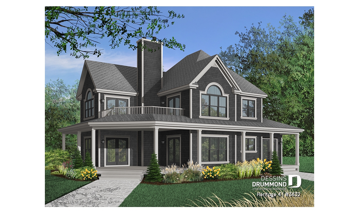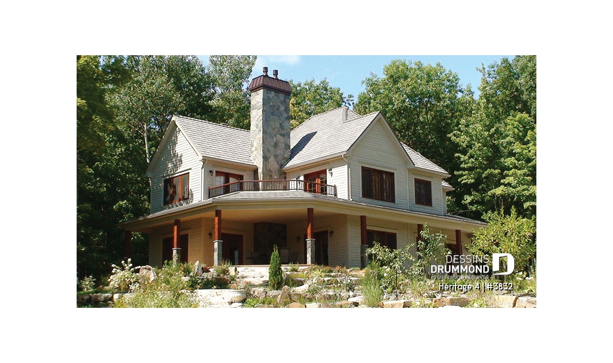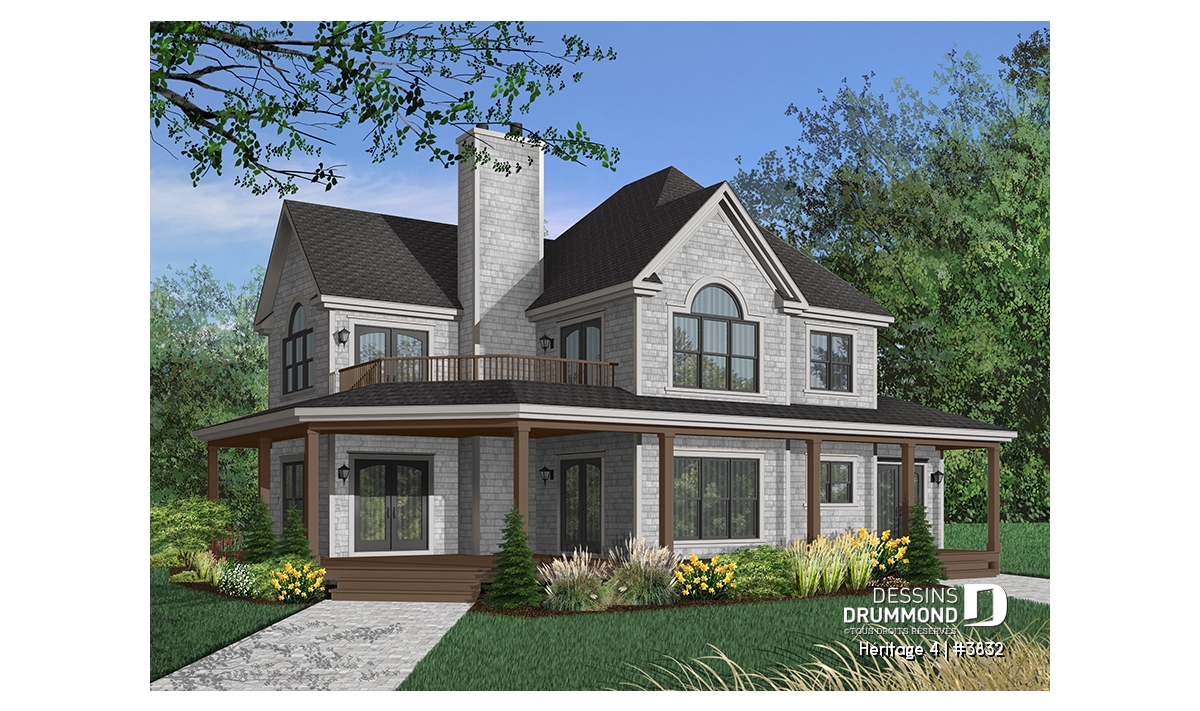 À l’étage, on retrouve, à quelques détails près, le même aménagement que pour le modèle 2837, dont celui-ci origine, alors que la suite des maîtres devient ici la suite d’invités et avec tout le confort que cela comporte comme une salle de bain privée par exemple. On remarque aussi deux belles chambres secondaires avec accès à une salle de bain commune et bien organisée avec une séparation de l’espace vanité du regroupement de la douche, de la toilette et du bain. Sans oublier, cette magnifique salle de séjour avec foyer et accès à la terrasse de l’étage pour encore plus de confort et pour la possibilité d’aménager une 5è chambre.