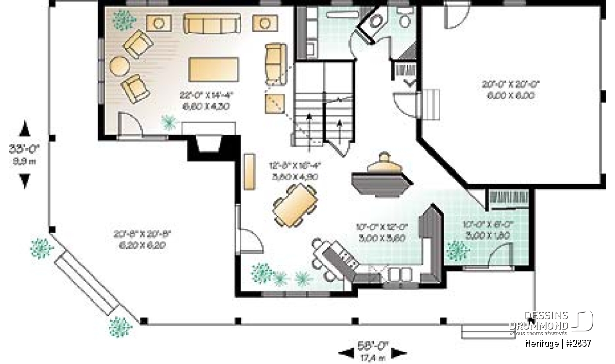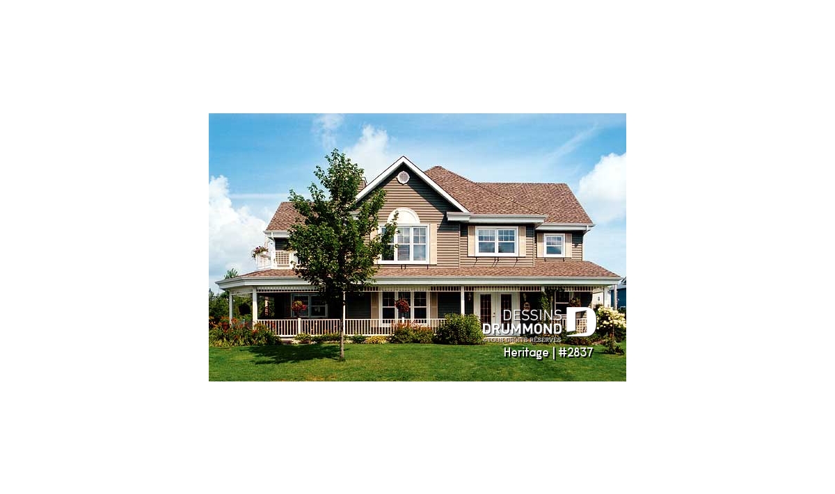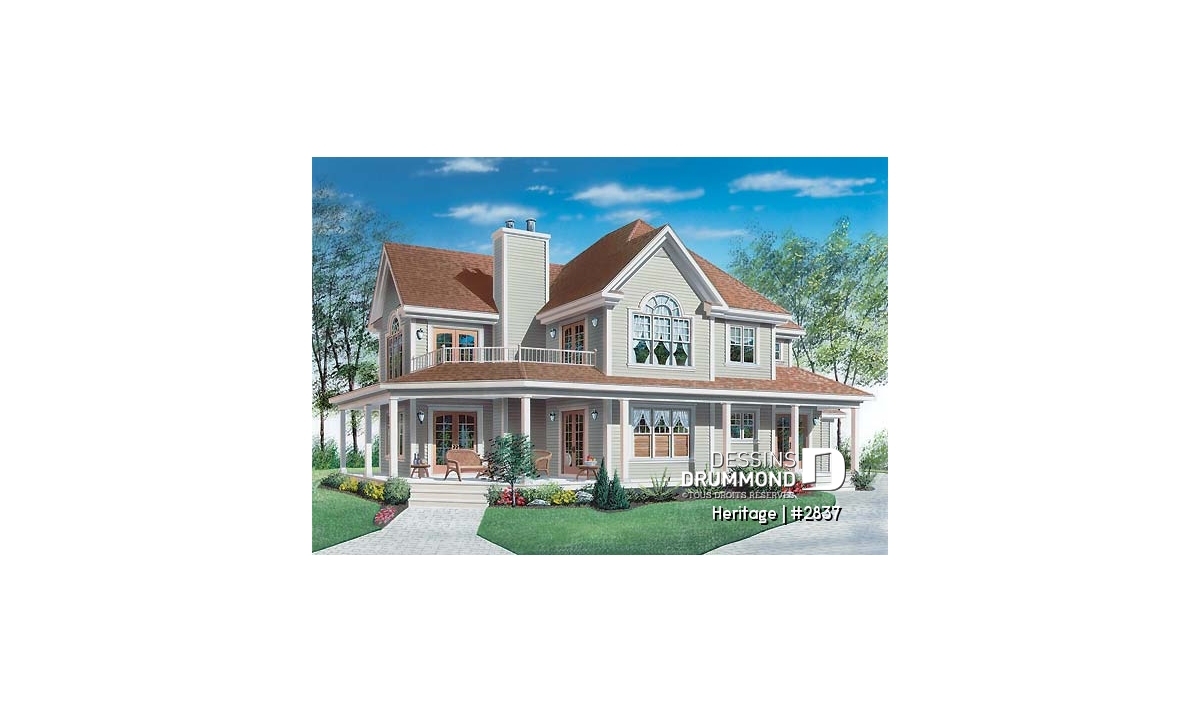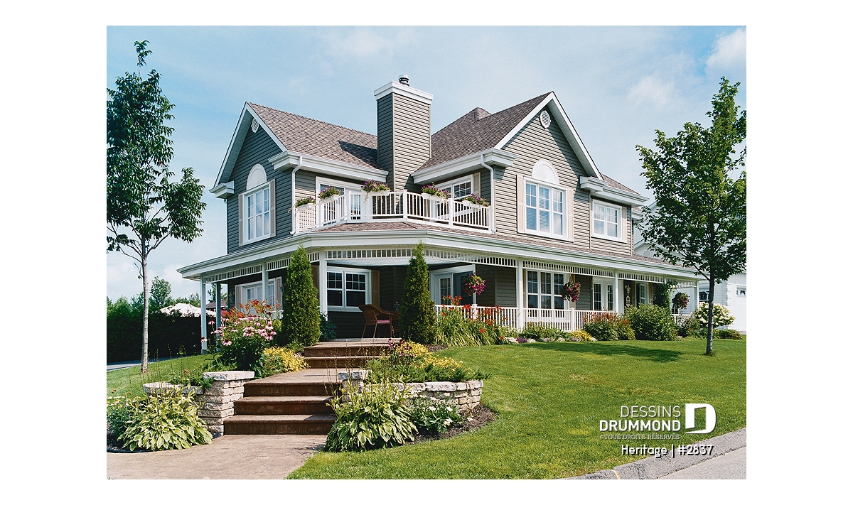 Un design classique se veut souvent intemporel et il en va ainsi pour ce plan 2837 dont les modèles dérivés ou plans similaires en trahissent la popularité au fil du temps. Est-ce à cause de ce coup d’œil distinctif proposant galeries et terrasses à volonté ou bien est-ce dû à un mariage des plus heureux entre des volumes bien balancés et une cheminée à la fois élancée et fort élégante ?