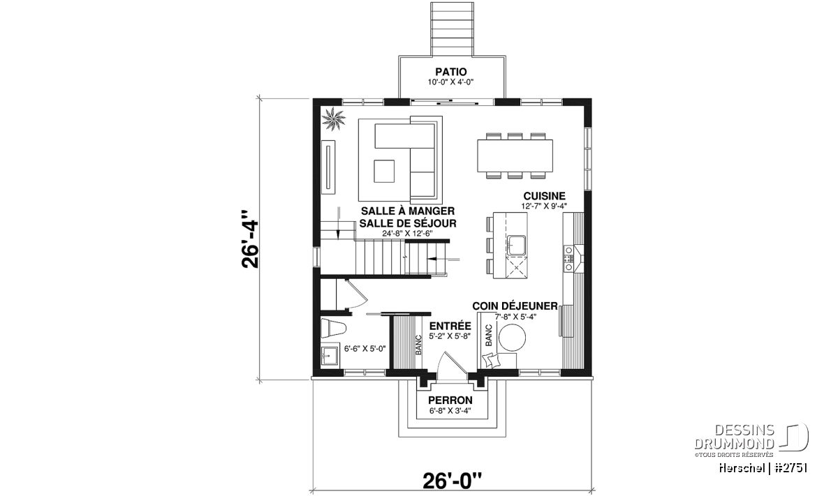 À l’intérieur, c’est principalement une maximisation de l’espace et la quasi absence de corridor que l’on peut apprécier au premier coup d’œil. Par la suite, on constate une entrée principale agréable côtoyant une cuisine/dînette à la fois originale et tout en lumière dont la configuration permet l’insertion d’un banc et rangement. La salle à manger forme avec la salle de séjour un espace à la fois ouvert et attrayant donnant en totalité sur l’arrière. À l’avant, ce plancher est complété d’une salle d'eau toujours des plus appréciées.