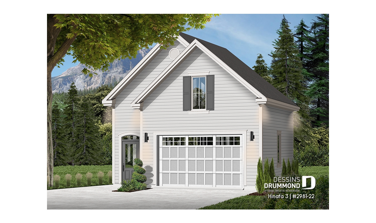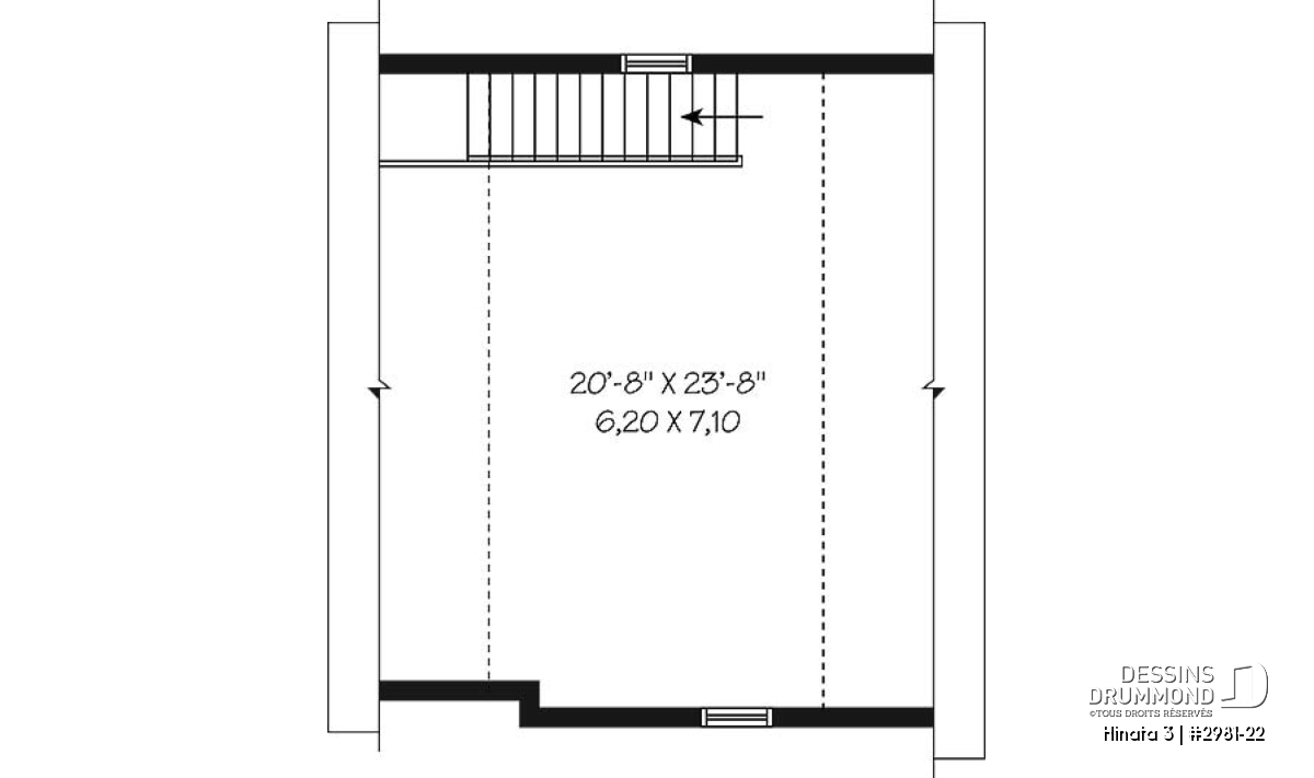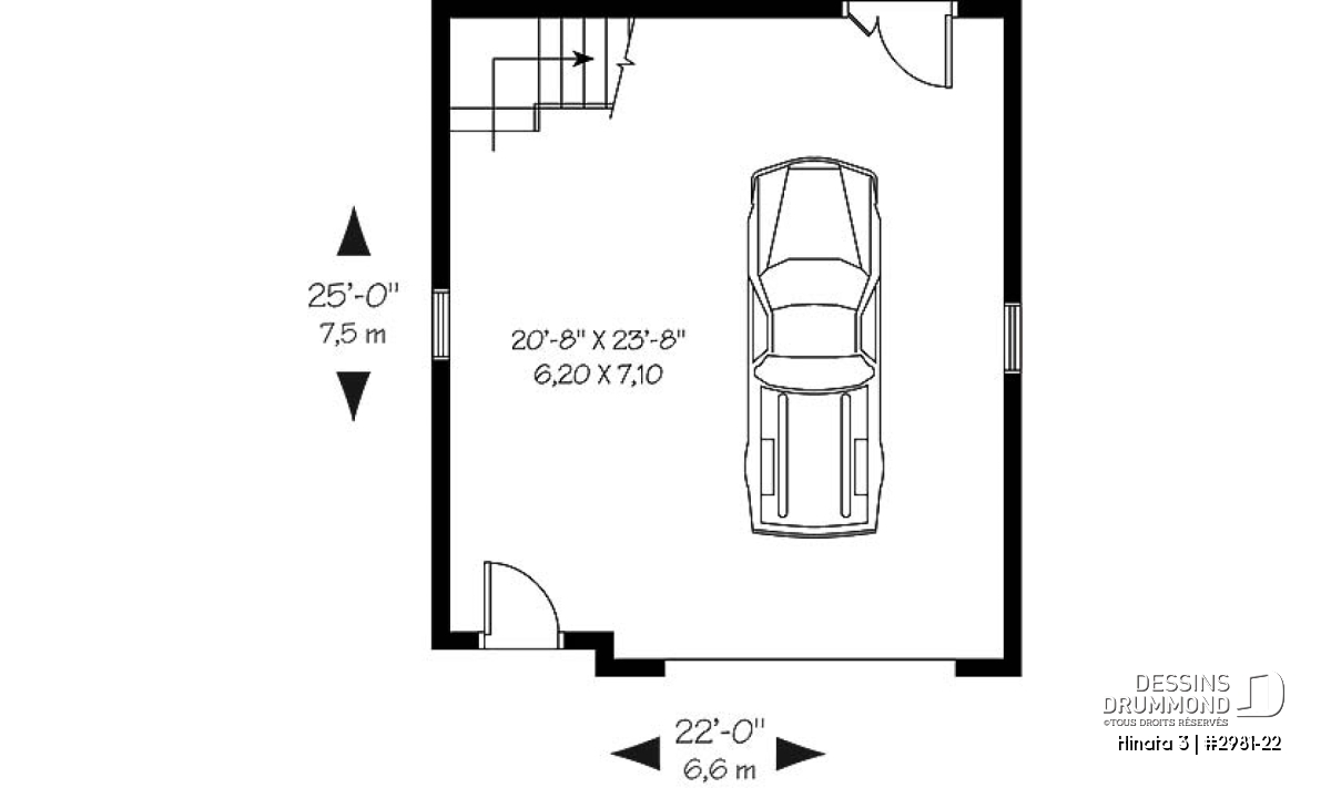 Plan de garage simple à l'Américaine avec espace boni de rangement accessible par des escaliers