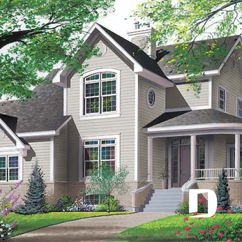Vue avant - MODÈLE DE BASE - Plan de maison Champêtre 4 chambres, garage double, chambre des maîtres r-d-c, solarium, 2 balcons abrités - Hirondelle 2