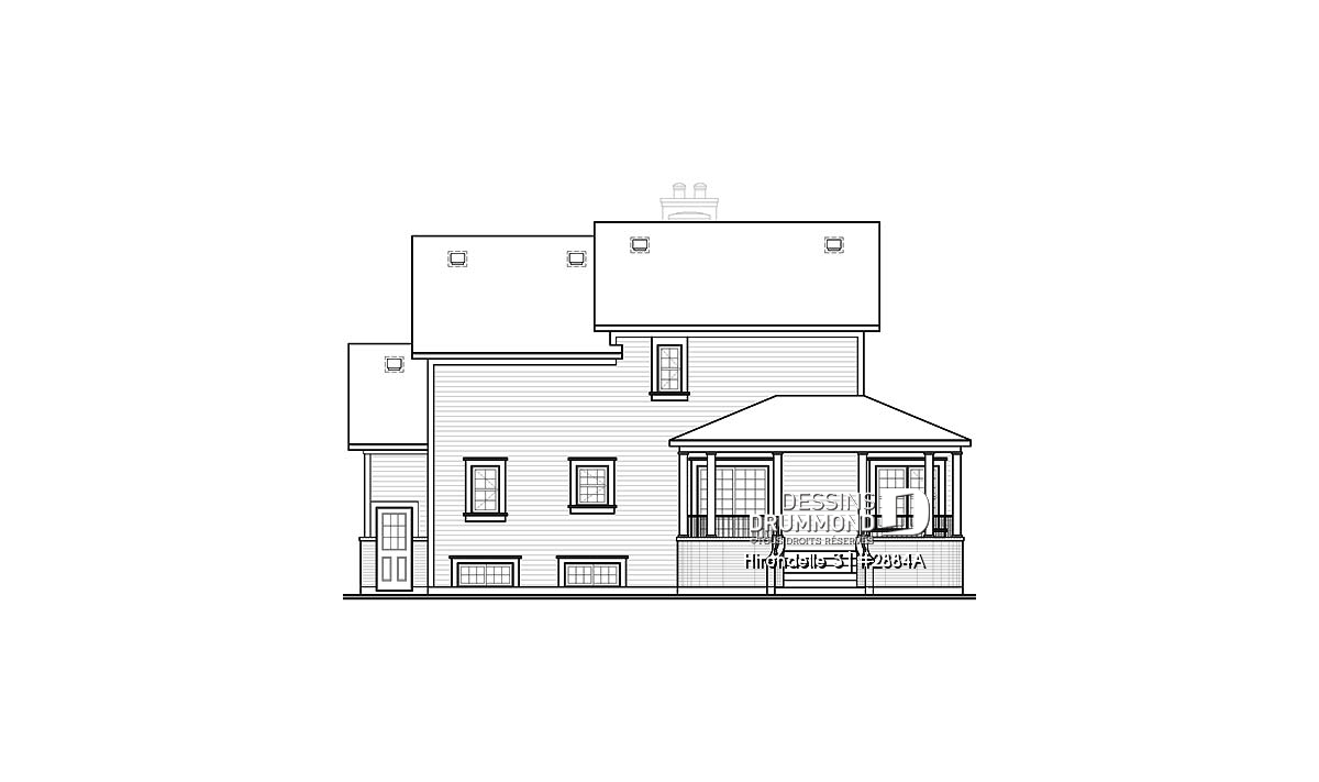 C’est en fait un heureux mariage de matériaux et de teintes que nous offre celui-ci. C’est aussi de beaux volumes, un fenêtrage attrayant et une galerie couverte tant à l’avant qu’à l’arrière.