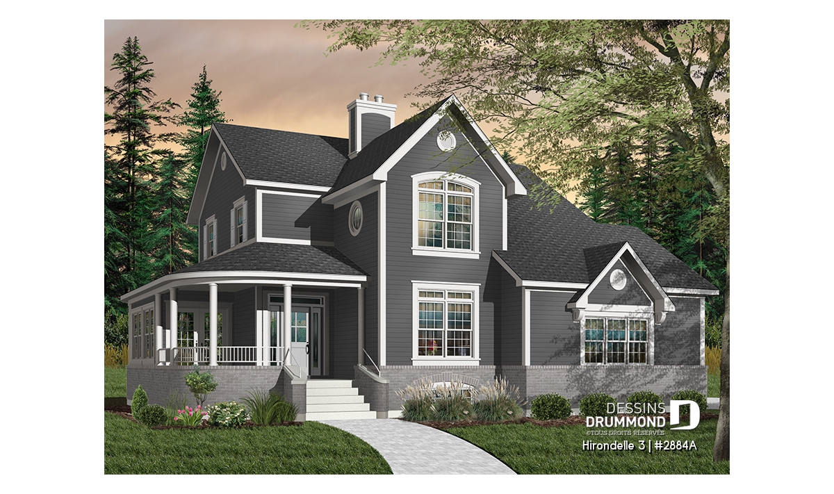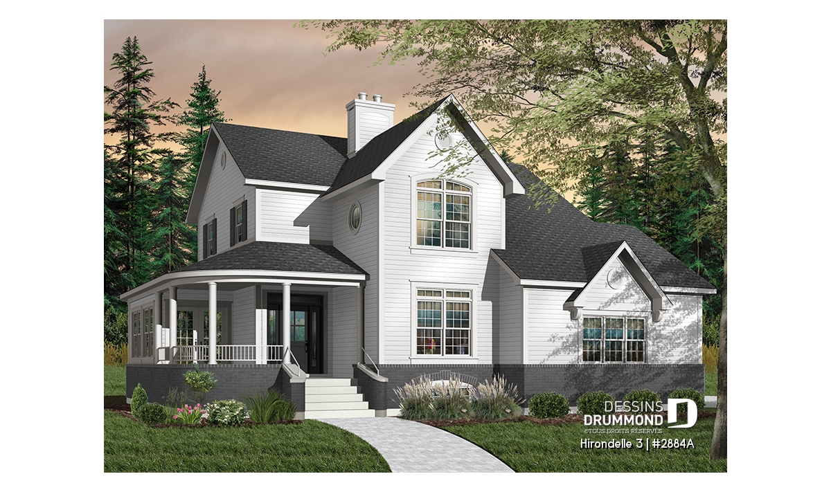 Superbe plan de maison de style farmhouse américaine, ou champêtre.