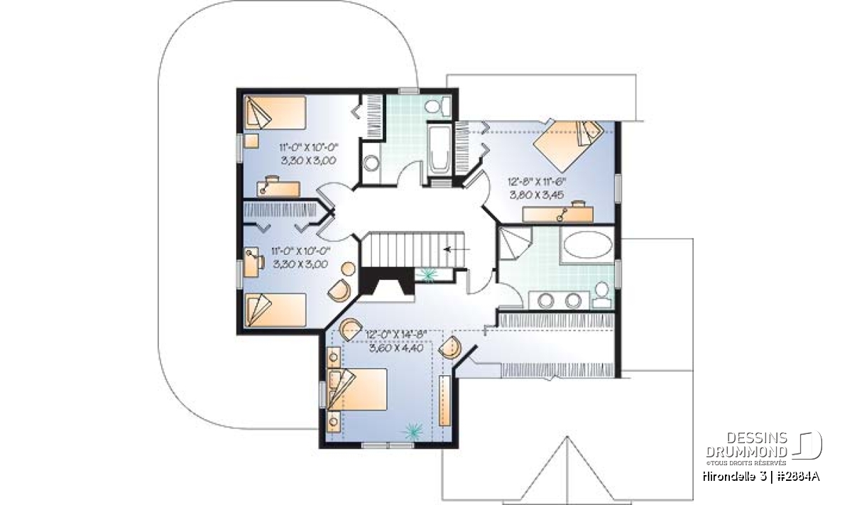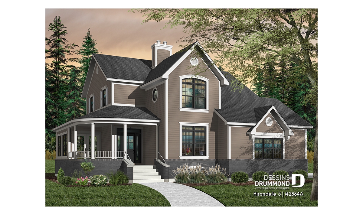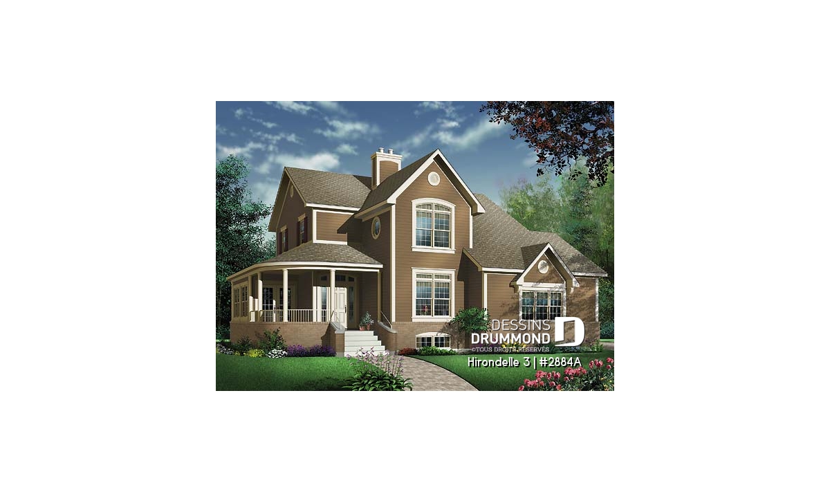 Finalement, la discrète présence d’un garage double se veut aussi un critère de popularité pour ce modèle dont on a pas fini d’entendre parler. Pour une version américaine proposant une suite des maîtres au rez-de-chaussée, voir le modèle 2617.