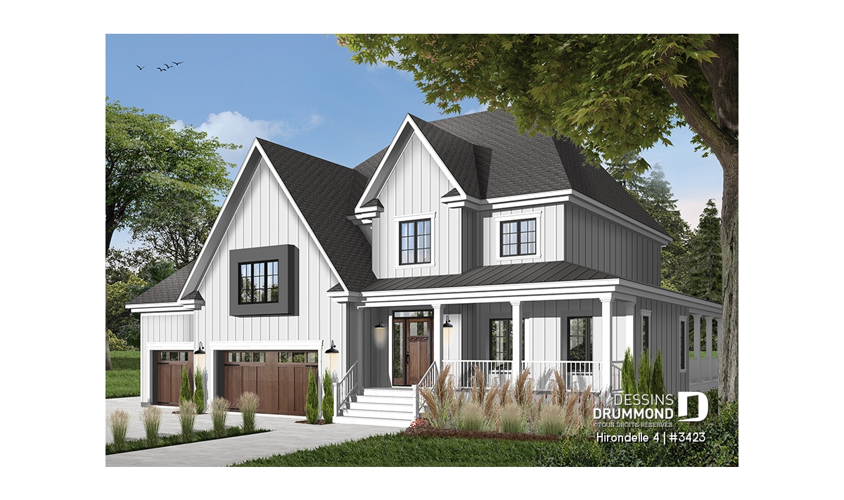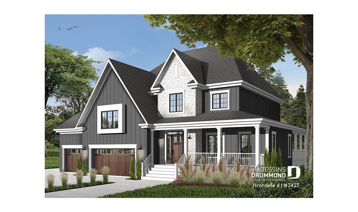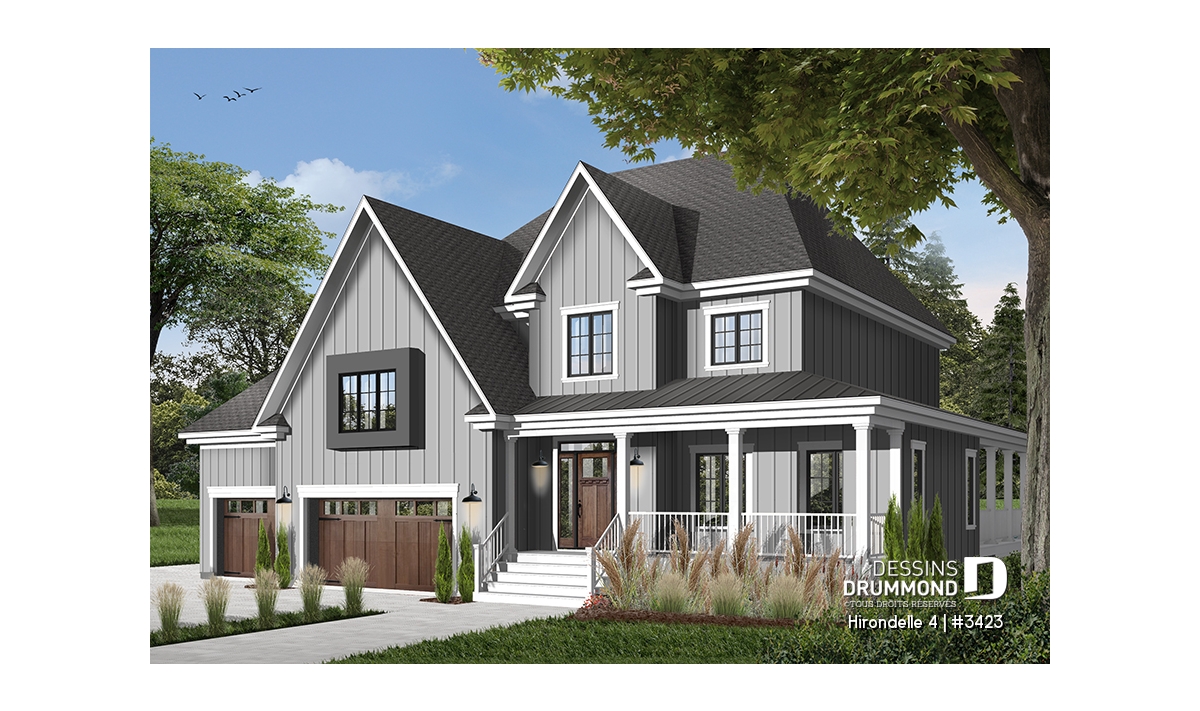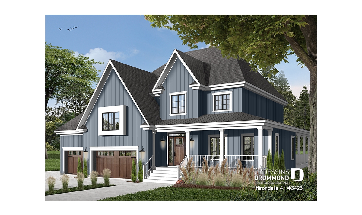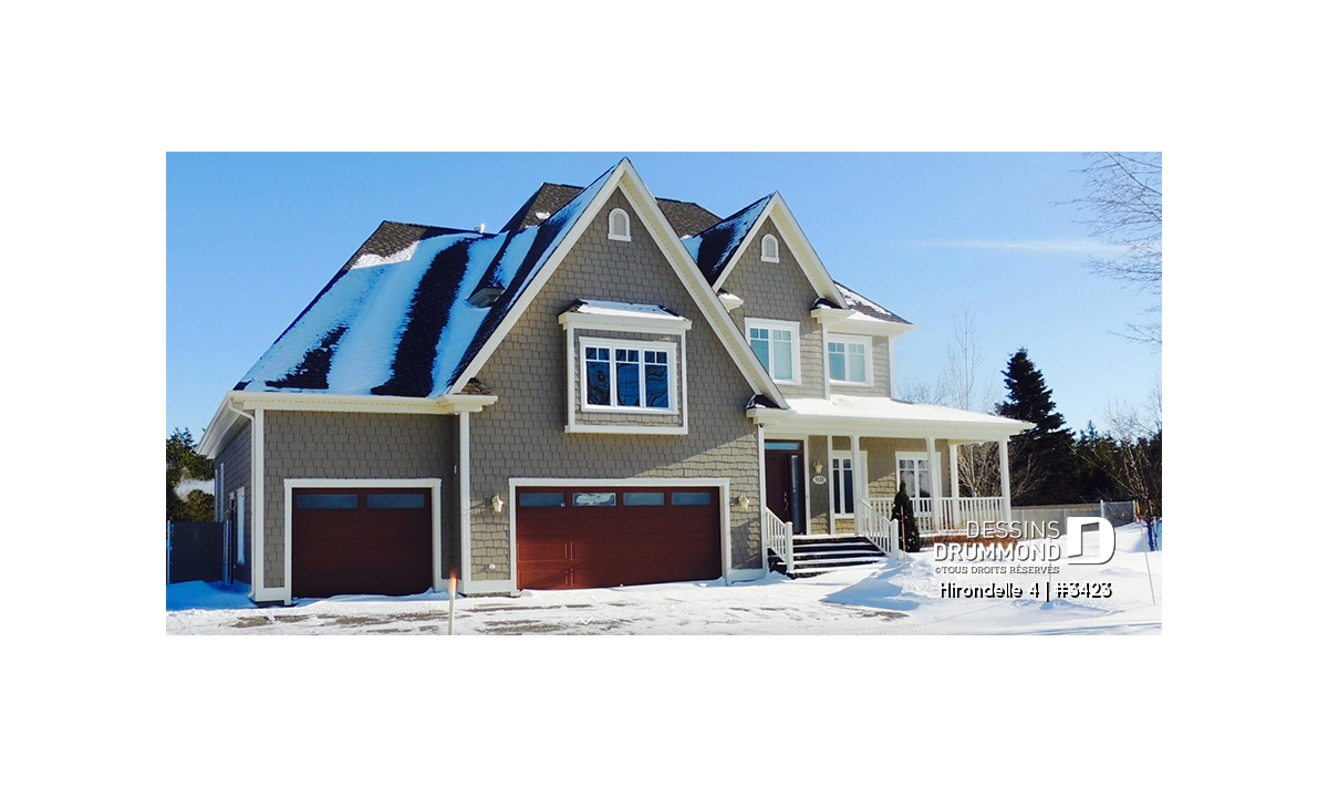 Réalisé dans une pensée davantage américaine qu’européenne, ce cottage nous suggère donc des attributs qui en font foi dont un garage triple, des galeries couvertes ainsi que de bien confortables espaces intérieurs.