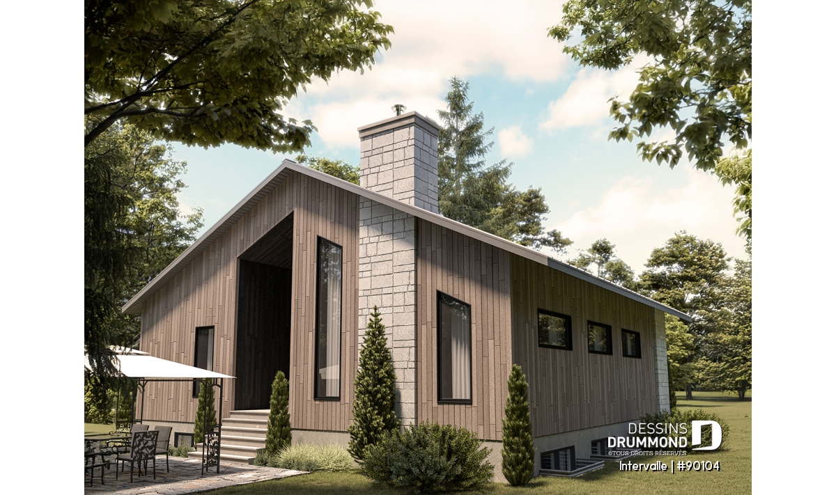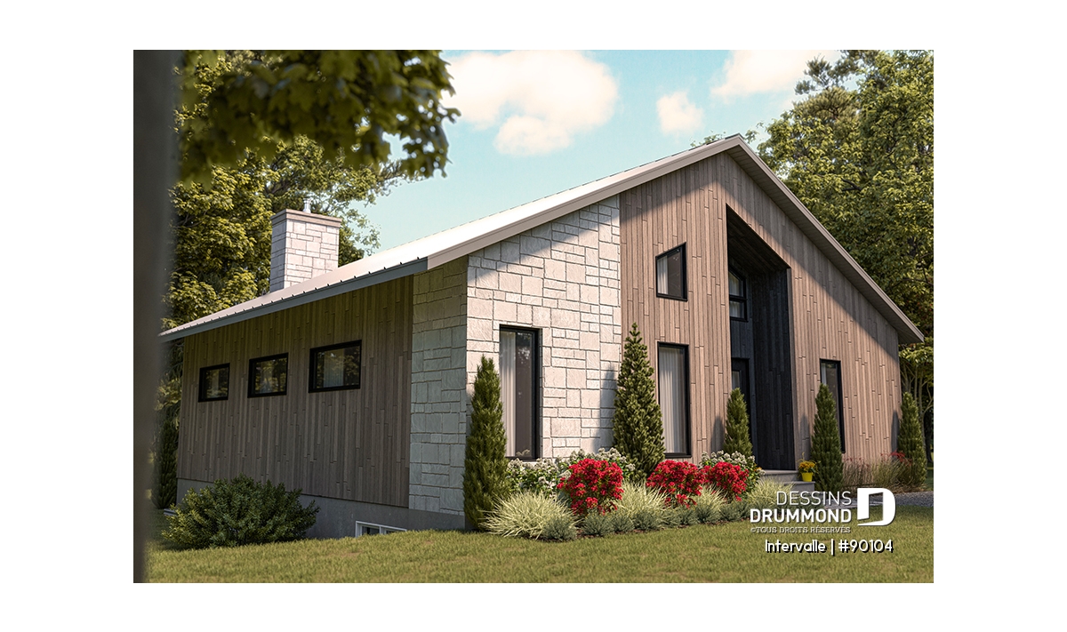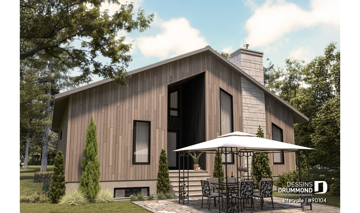 Le plan de maison éco-responsable INTERVALLE (#90102)) est parfait pour les terrains dont la façade se trouve à l’est. Ses grands espaces de vie surplombés d’une mezzanine permettront à tous les membres de la famille de profiter d’une ambiance chaleureuse sans se piler sur les pieds. Il y a même un petit boudoir intime sur la mezzanine. Vous imaginez vous y faire une séance de yoga par exemple?
