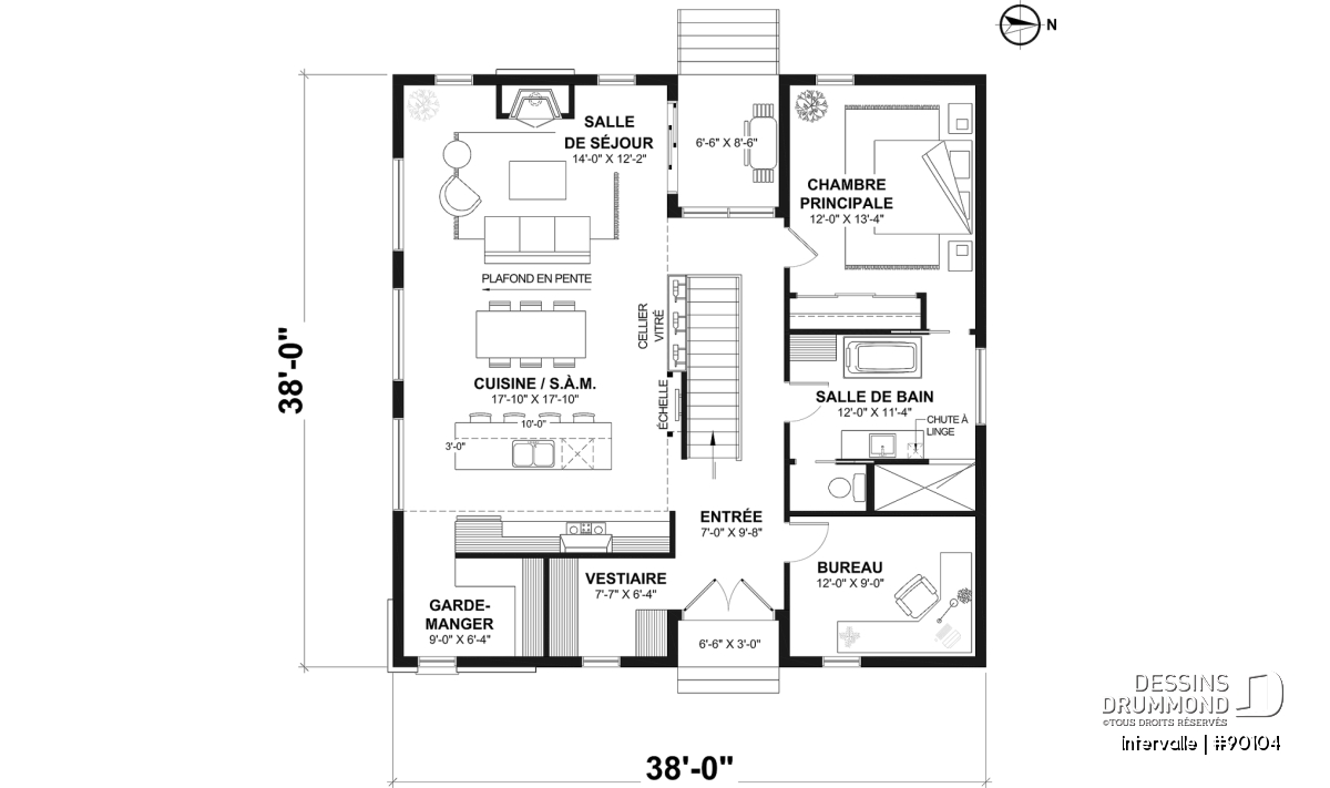 Cellier, Mezzanine, Vestiaire, Garde-manger, Foyer, Bureau / Salle étude, Bain et douche séparés, Aire ouverte, Ilôt, Chute à linge
