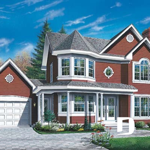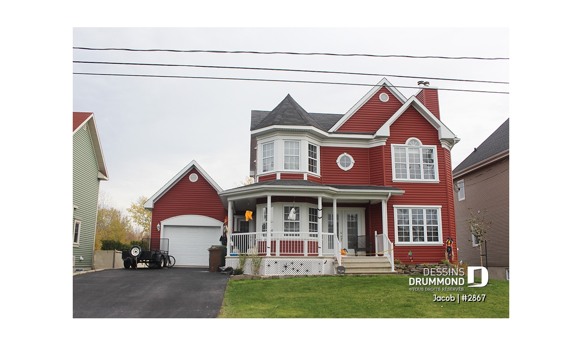 D’abord ce garage en retrait et de bon format, avec descente au sous-sol, permet de bien dégager une façade aux accents champêtres. Ensuite, l’entrée de service stratégique suggère pour sa part un vestiaire des plus logeables.