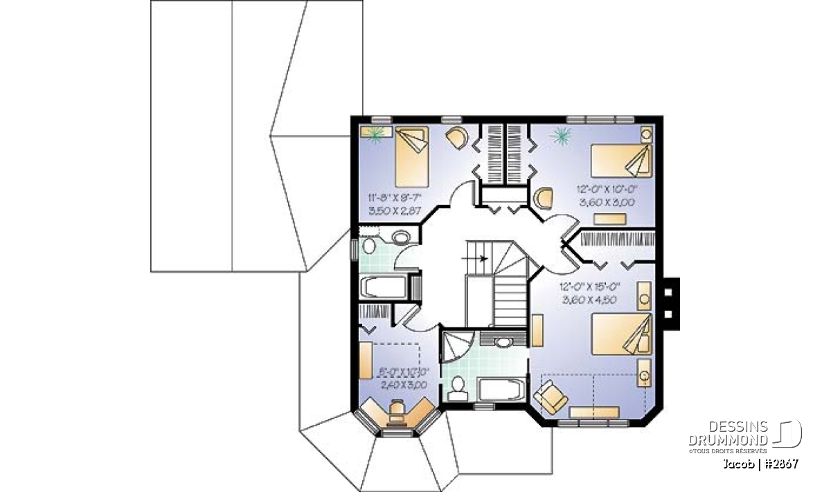 À l’étage, la pensée familiale se dévoile encore davantage avec trois belles chambres dotées de bons rangements, deux salles de bain, dont une propre à la chambres des maîtres, et cet espace versatile pouvant devenir une quatrième chambre et aménagée dans la partie en tourelle.