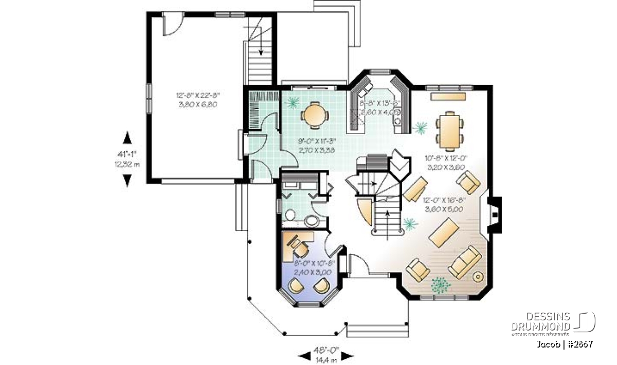 Toujours au rez-de-chaussée, on remarque un espace dînette attrayant, une cuisine fonctionnelle avec un garde-manger plus logeable que la moyenne. On constate aussi un bel espace ouvert unissant la salle à manger et la salle de séjour, avec foyer, ainsi qu’une pièce bureau ou « media room » aménagée dans la partie tourelle.