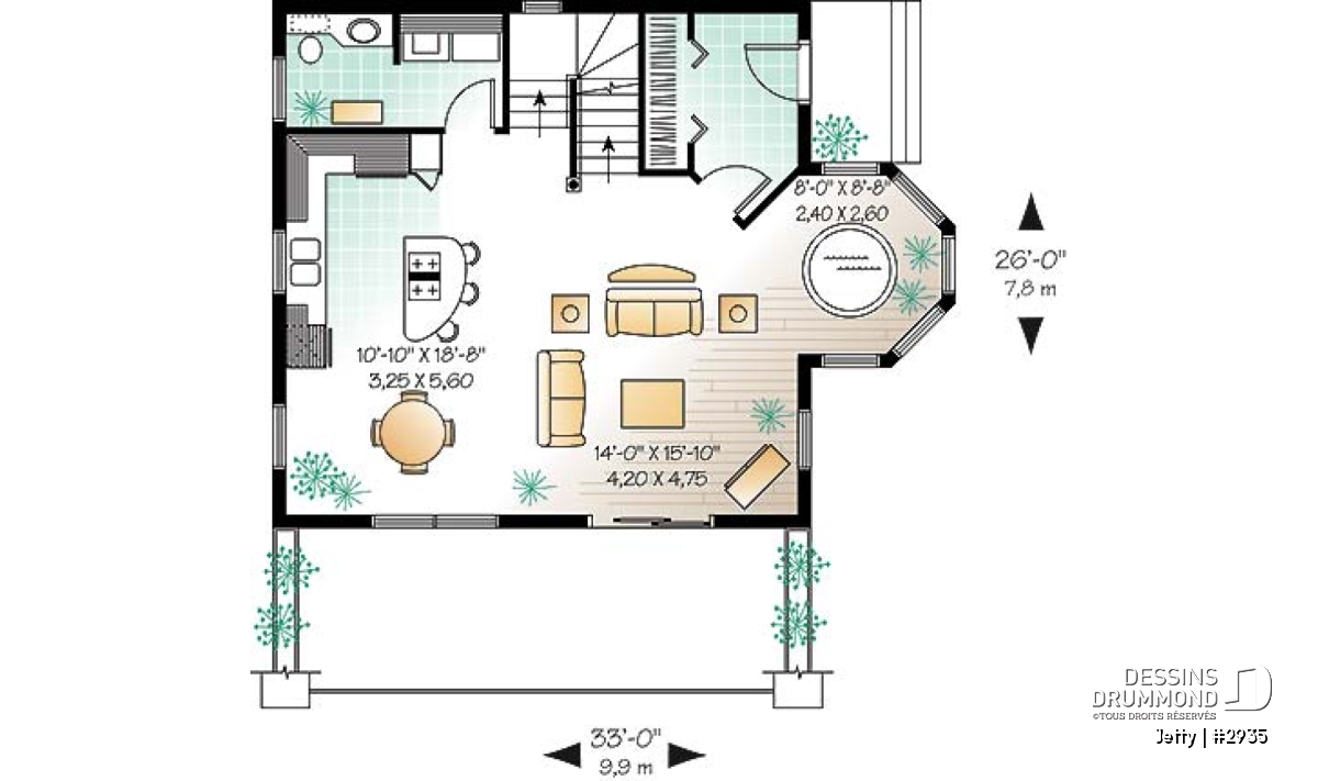 | Largeur | 33'0" | Profondeur | 26'0" |