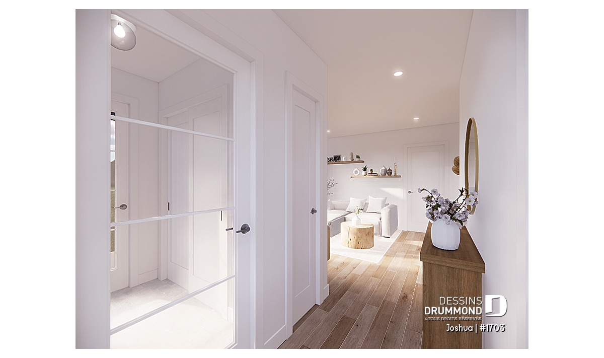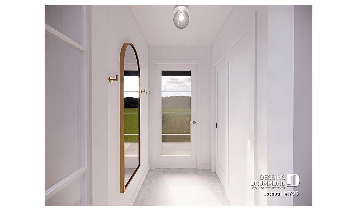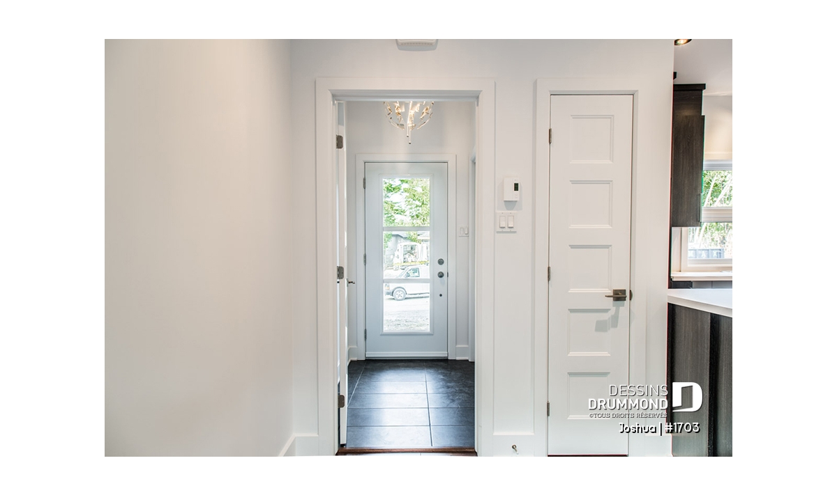 Entrée pratique avec vestibule fermé et grande garde-robe pour un rangement optimal.