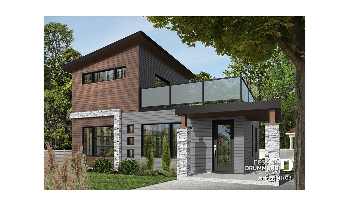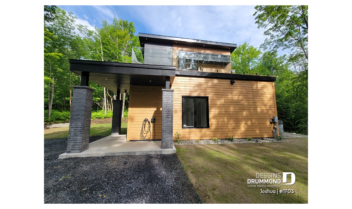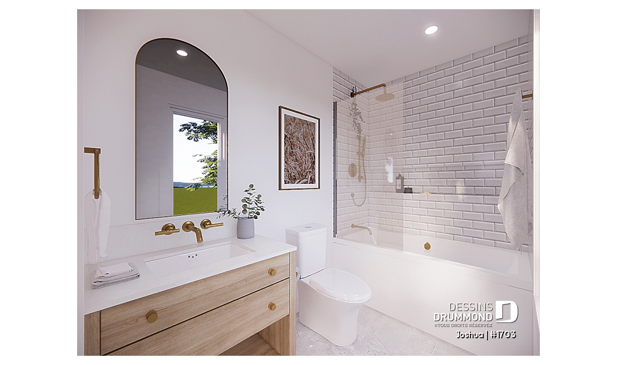 Reposant sur une fondation de type dalle flottante, ce plan est idéal pour les terrains sans sous-sol ou pour ceux qui recherchent une maison compacte, simple à entretenir et écoénergétique.