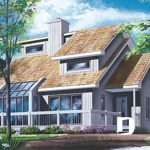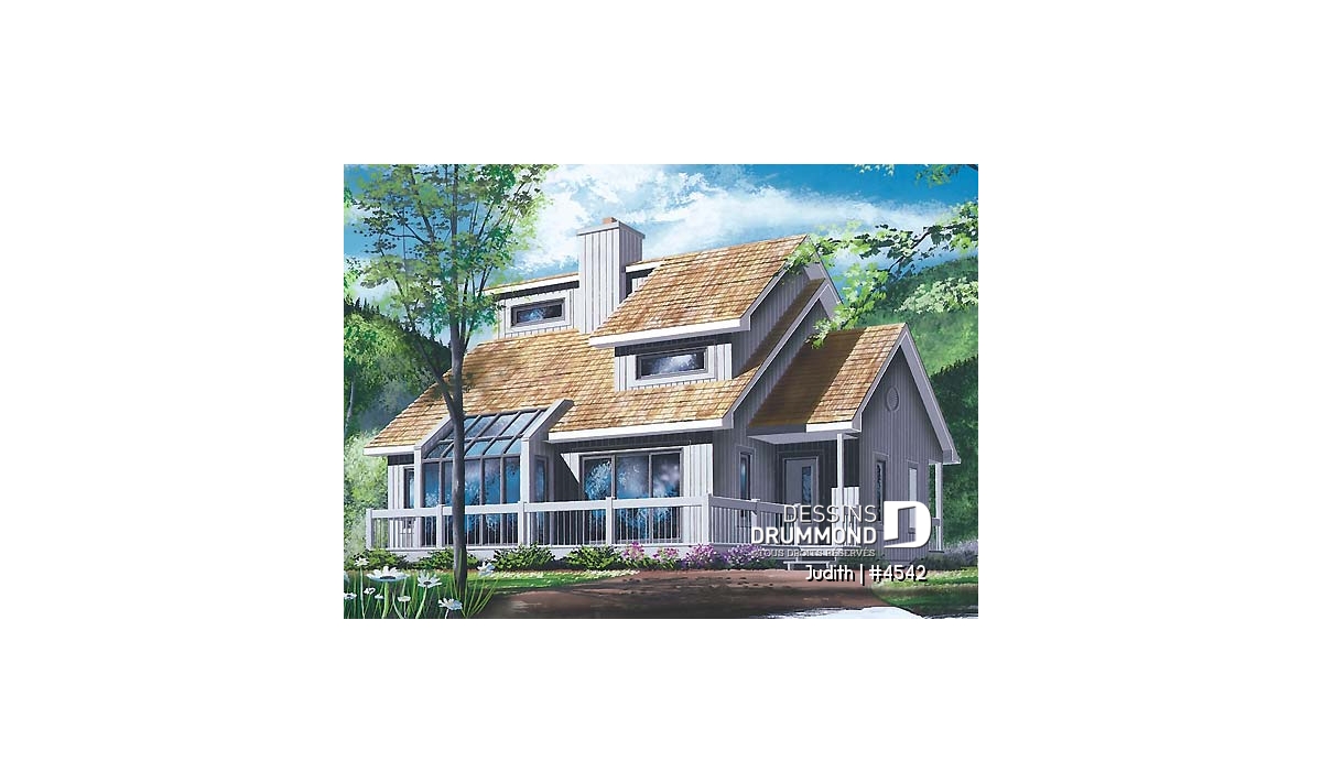 Modèle de maison pour vue panoramique, d'influence rustique moderne, 3 chambres, foyer, plafond cathédrale