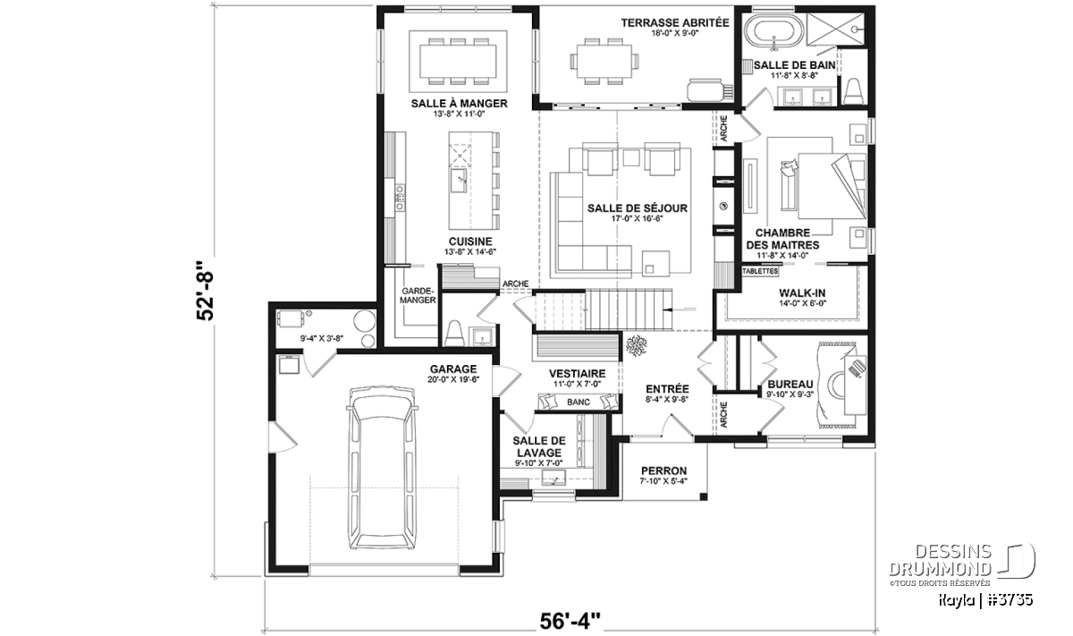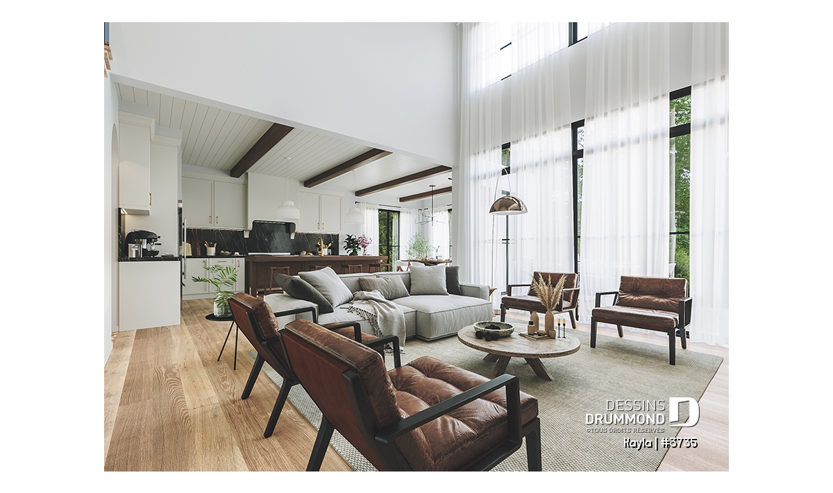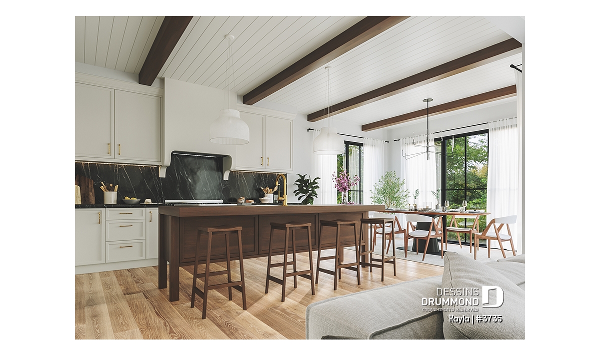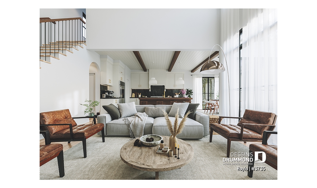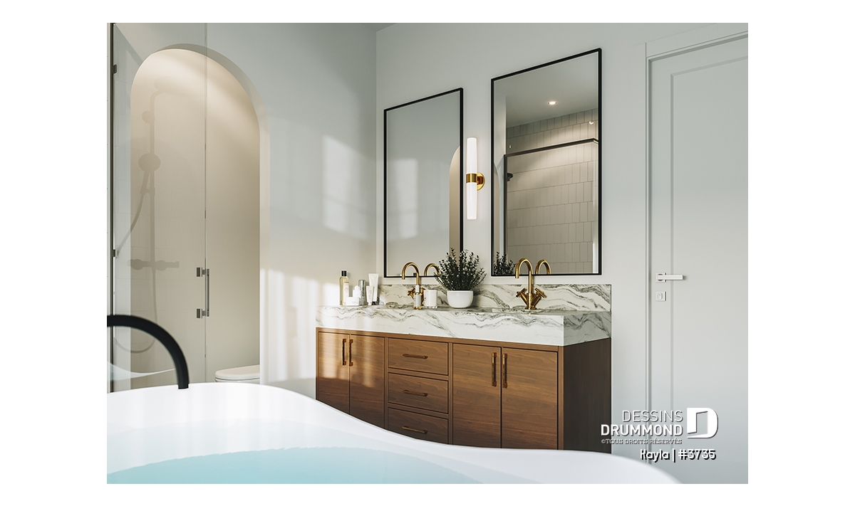 Aire ouverte, Bureau / Salle étude, Chambres séparées, Foyer, Garde-manger, Ilôt, Plafond cathédrale, Salle de lavage au rez-de-chaussée, Suite des maîtres au rdc, Vestiaire, Walk-in ch. maîtres, Plafond à plus de 8', Banquette, Bain et douche séparés, Lavabo double, Meuble(s) encastré(s), Tablettes, Arche