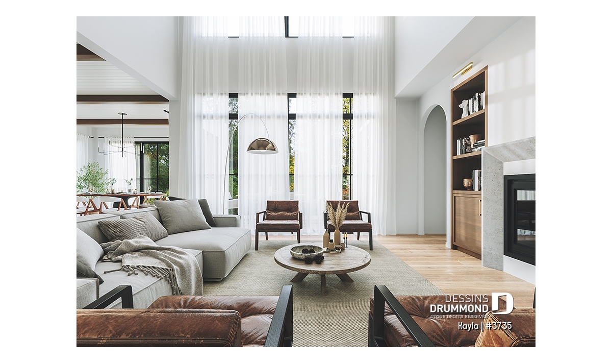 Plan de maison classique proposant de magnifiques arches décoratives à l'intérieure.