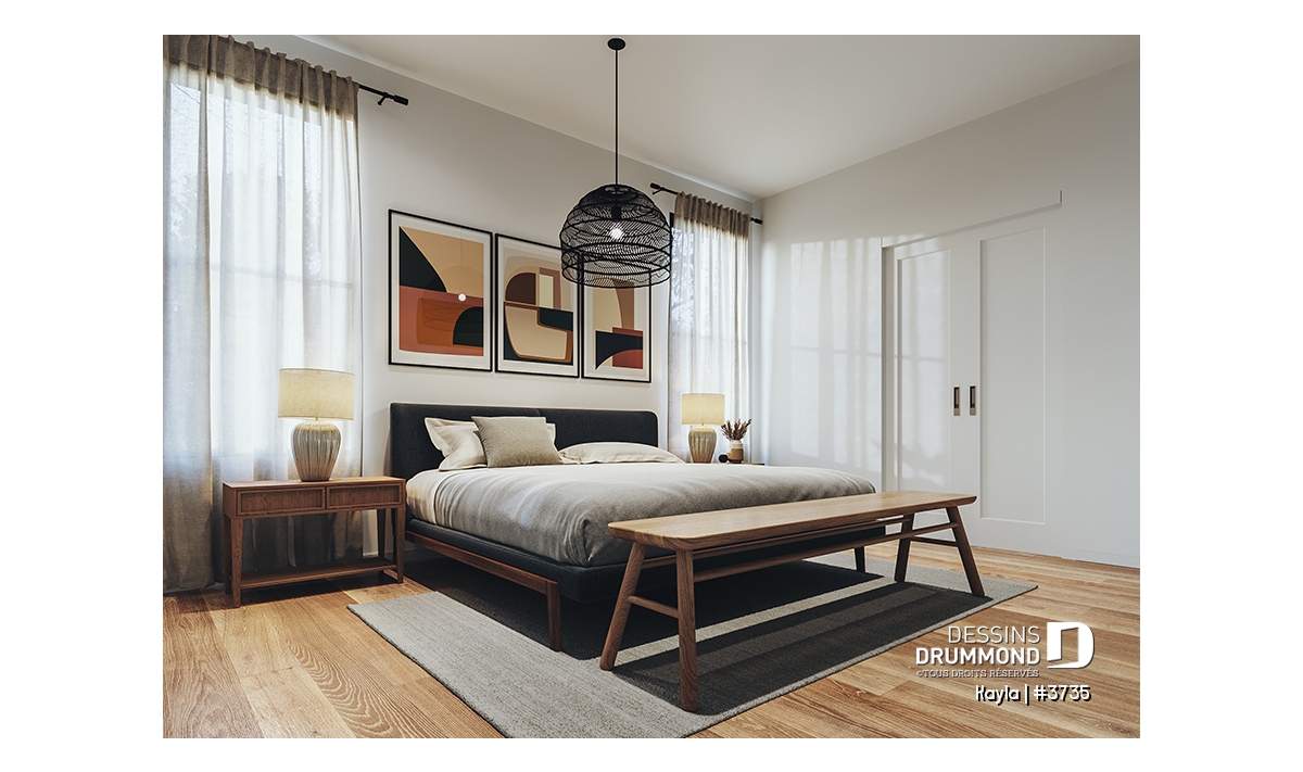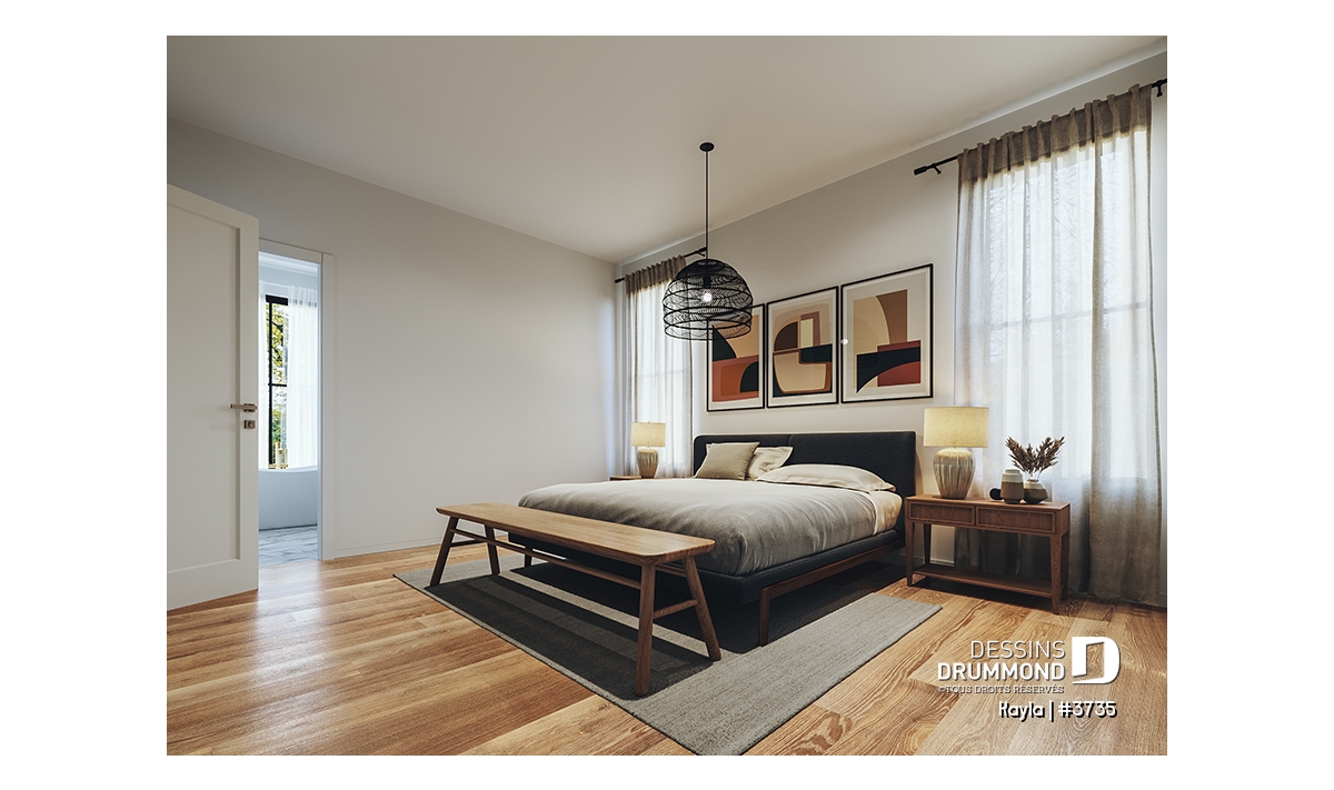 Chambre des parents au rez-de-chaussée et possédant une salle de bain privée ainsi qu'un grand walk-in.